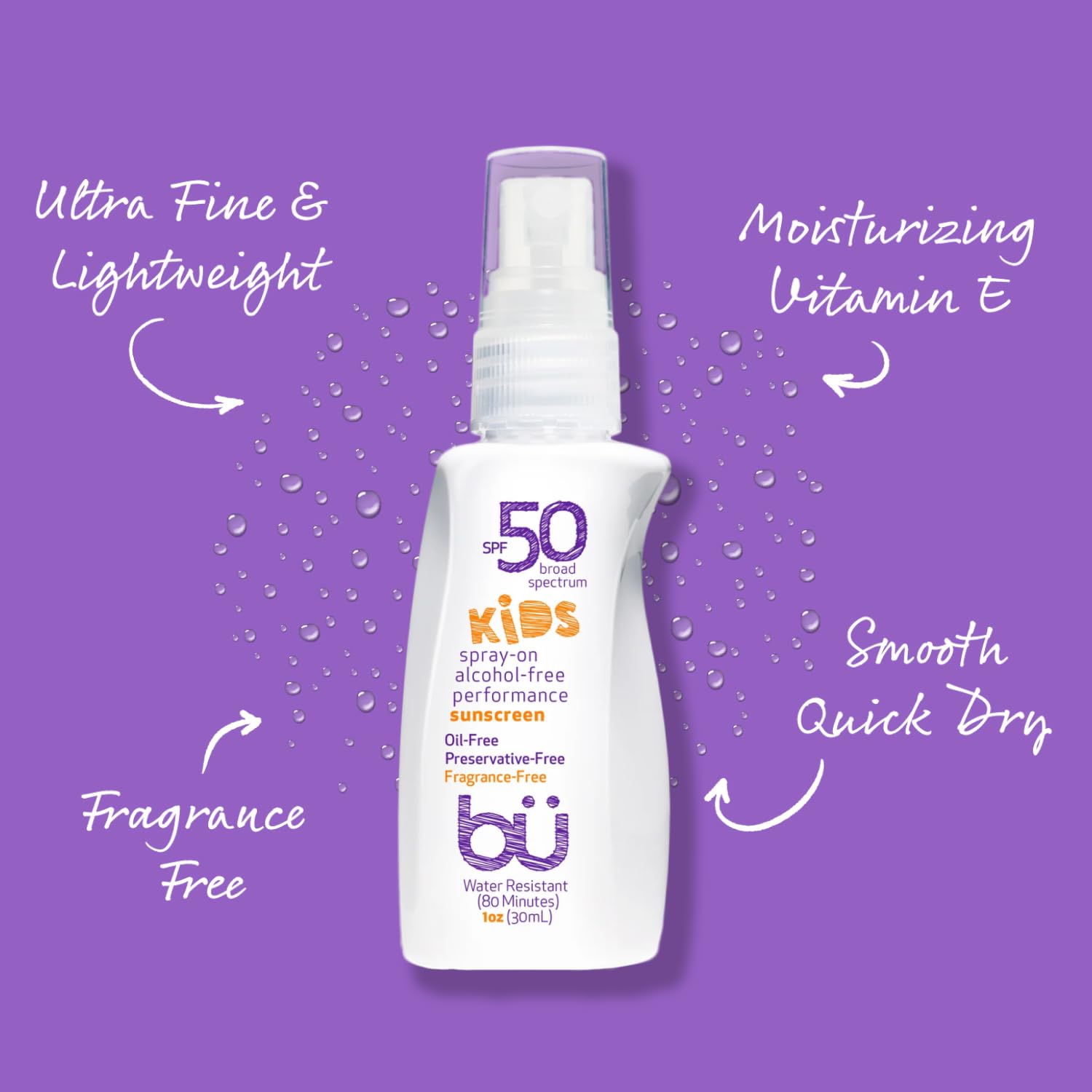 BU SPF 50 Kids Sunscreen Spray for Face and Body, Non Aerosol Spray, Fragrance Free, Clear, Non Greasy, Water Resistant, Fragrance Free 1 oz (3 Pack)