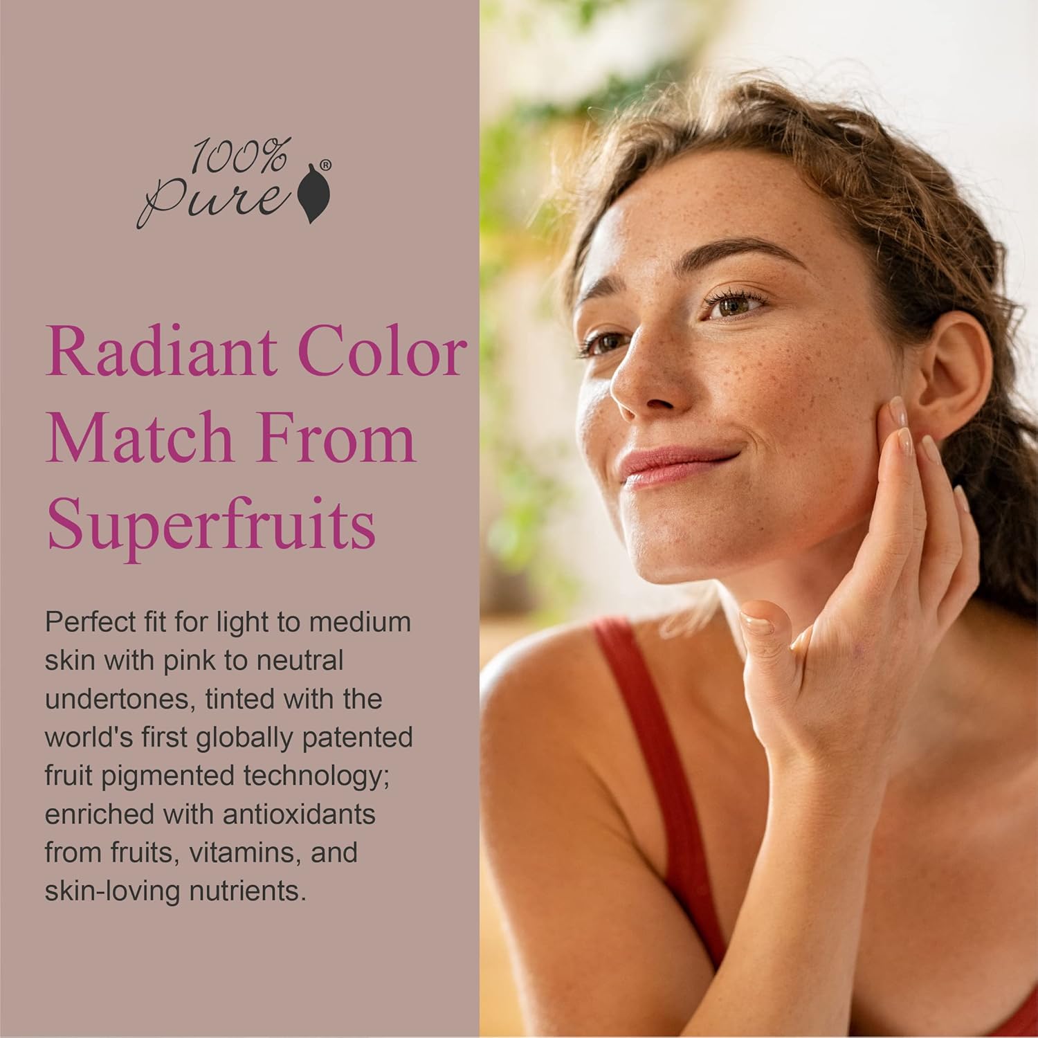 - RADIANT COLOR MATCH FROM SUPERFRUITS - Perfect fit for light to medium skin with pink to neutral undertones, tinted with the world's first globally patented fruit pigmented technology; enriched with antioxidants from fruits, vitamins, and skin-loving nutrients.