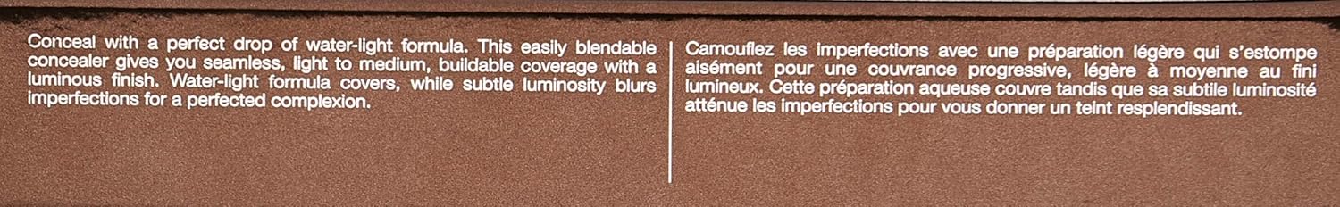 - A weightless, water-rich concealer with flexible pigments