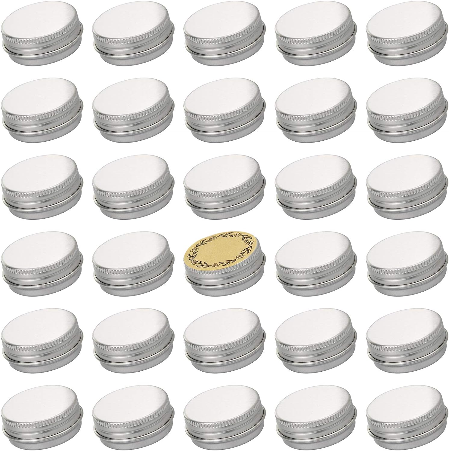 0.5 oz Screw Top Aluminum Tin Jar with Screw Lid and Blank Labels (Silver - Pack of 32)