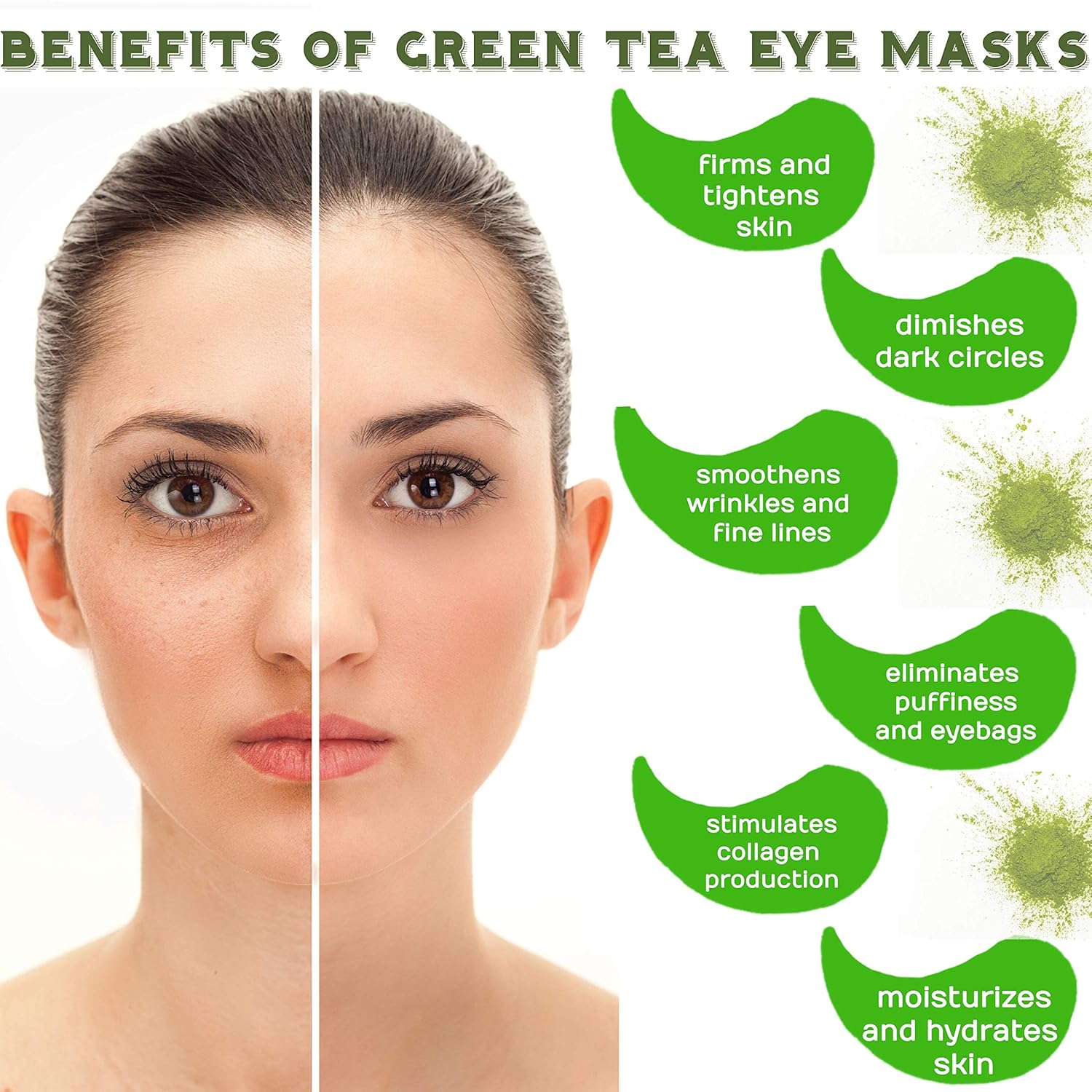 Green Tea Matcha Eye Mask Under Eye Patches Treatment for Dark Circles, Eye Bags, Puffiness - Anti-Wrinkle With Hyaluronic Acid and Collagen - 30 Pairs/60 Pcs.