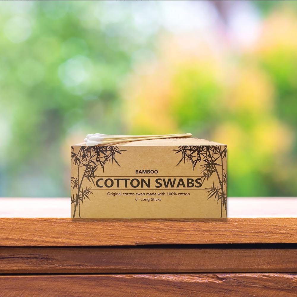 500 PCS 6" Long Cotton Swabs with Bamboo Handle for Makeup, Gun Cleaning or Pets Care