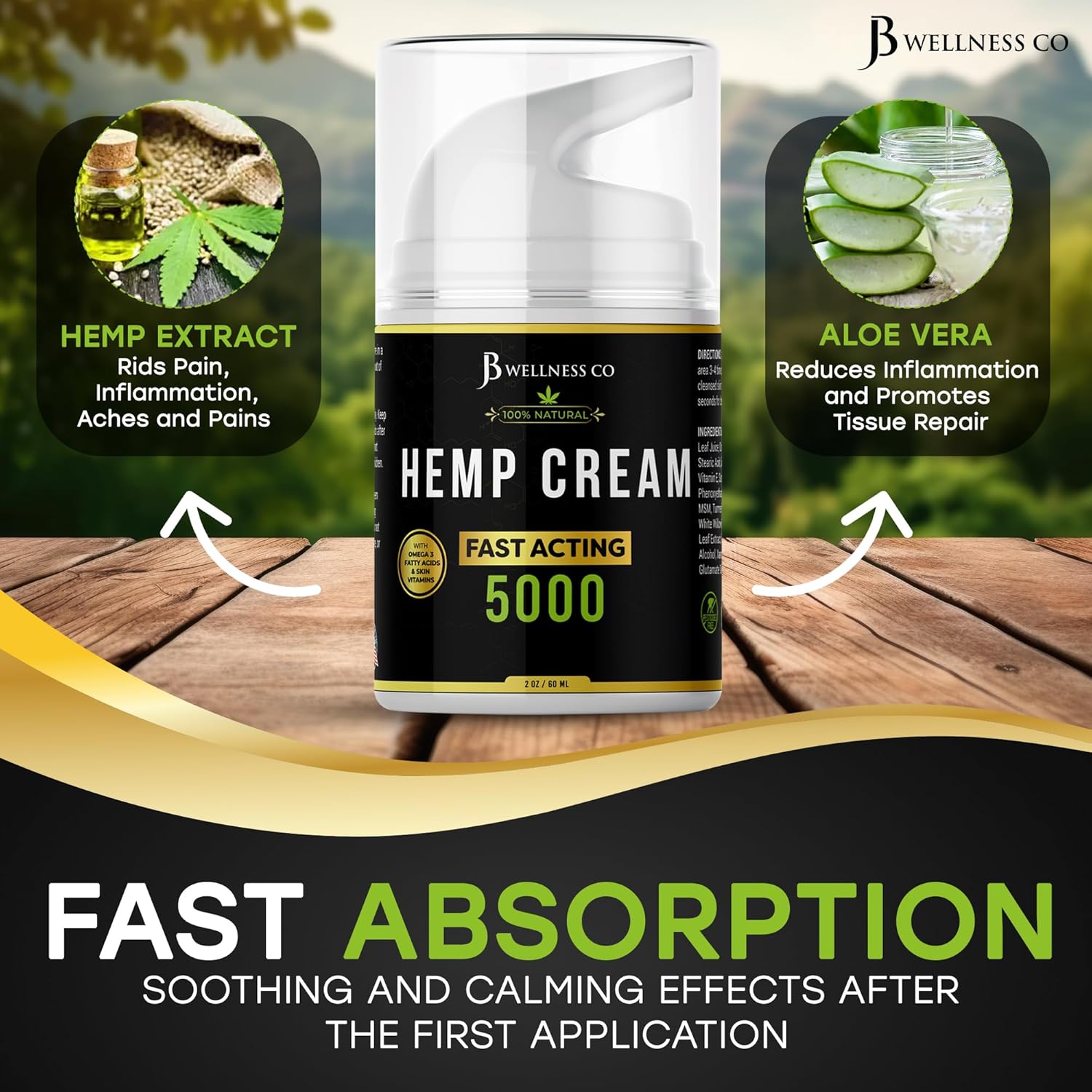 - FAST ABSORBING - long lasting and non-greasy JB Wellness Hemp Cream helps you to feel more comfortable.