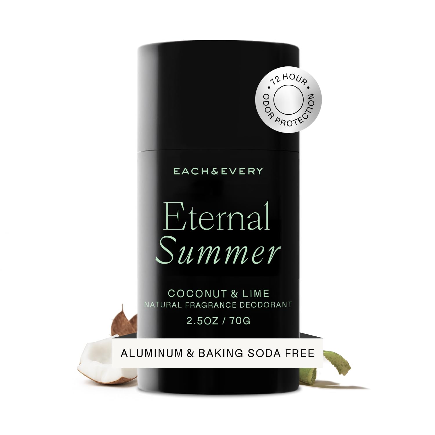 - Eternal Summer - This scent invites you to soak up the sun with notes of luscious coconut and a tropical twist of lime. Meanwhile, plush tapioca starch and conditioning coconut oil give this sensitive skin deodorant a smooth glide.