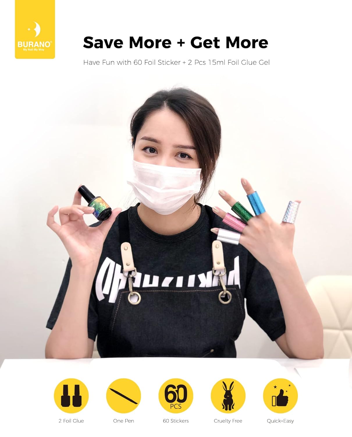 - More easy more Creative : nail foil glue with Burano nail foil gel, thousands of nail design can been done with this set. What’s more, Nail Push brush Pen will help to create the foil design more easily. You’re the nail pro from now on