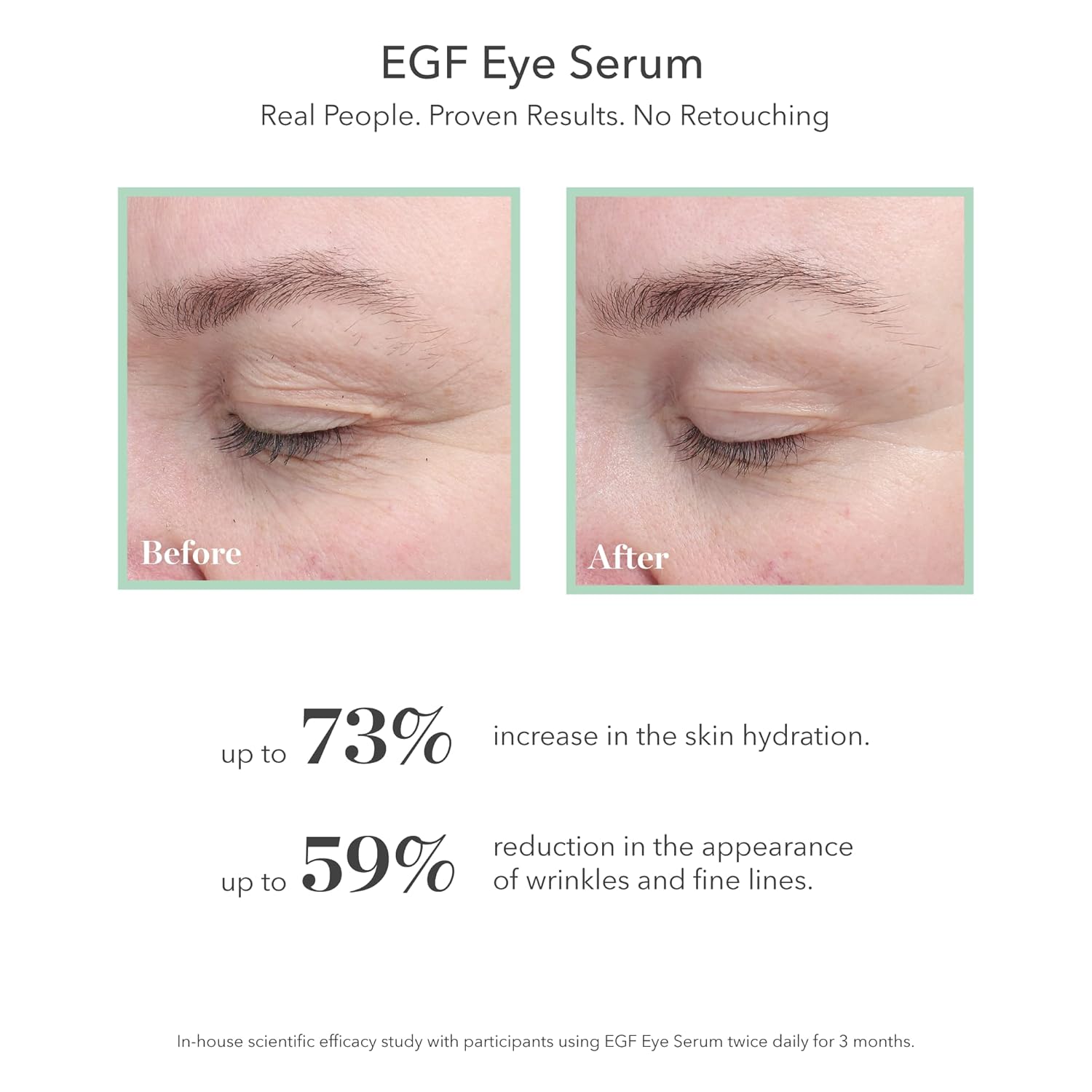 - WRINKLE FIGHTING, SKIN FIRMING: In just 90 days of using the EGF Serum and EGF Eye Serum, users saw real results with less noticeable wrinkles and skin that looks and feels firmer, smoother and more youthful-looking. The eye serum also helps minimize the appearance of puffiness and crow’s feet.