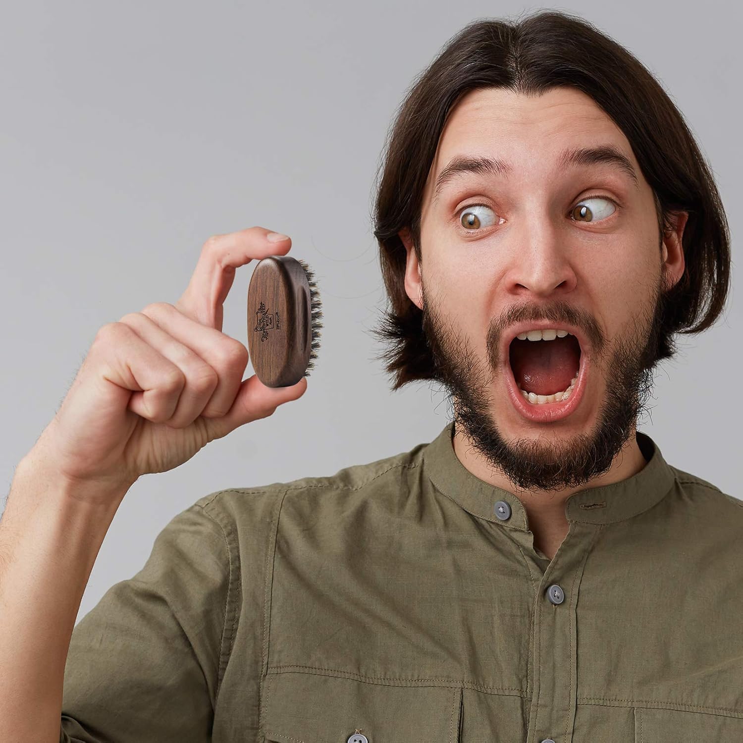 BFWood Small Travel Beard Brush - Natural Boar Bristles with Black Walnut Wood
