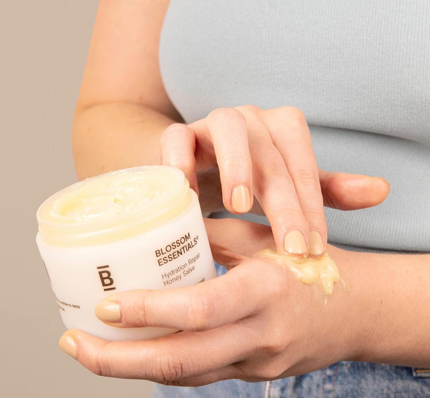 Blossom Essentials Honey Salve - Organic Manuka Honey Hydration Repair - Eczema Relief for Dry, Itchy, Sensitive Skin - Soothing Moisturizer & Balm for Kids, Adults - Made in USA - 4oz