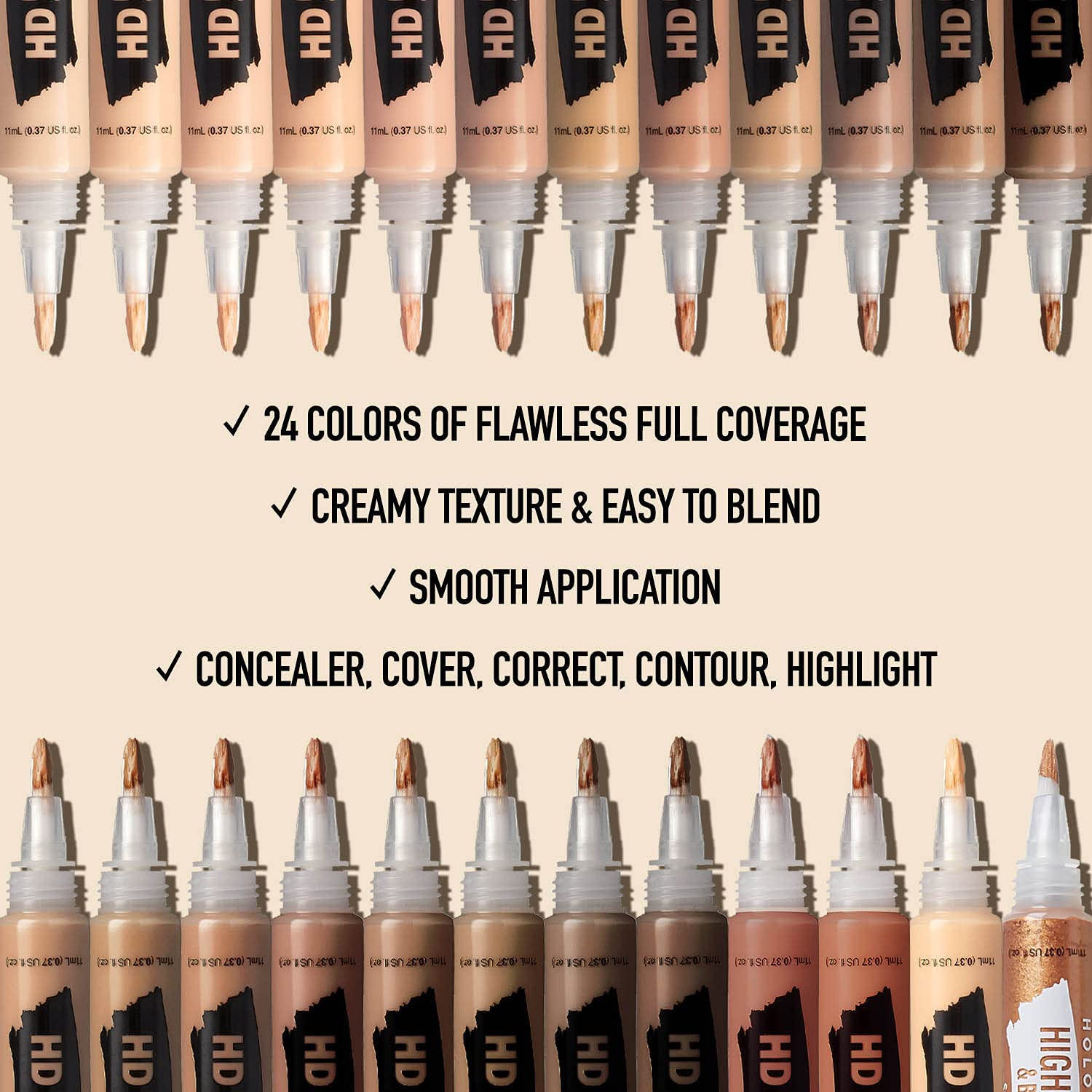 - 【FULL COVERAGE PERFECTION】 Ruby Kisses HD Concealer is your go-to multi-functional makeup product, serving as a color corrector, concealer, foundation, and contouring tool. Its creamy formula effortlessly covers blemishes, hyperpigmentation, and imperfections, ensuring a flawless complexion. Choose from 24 diverse shades for your perfect match and enjoy long-lasting quality and durability.