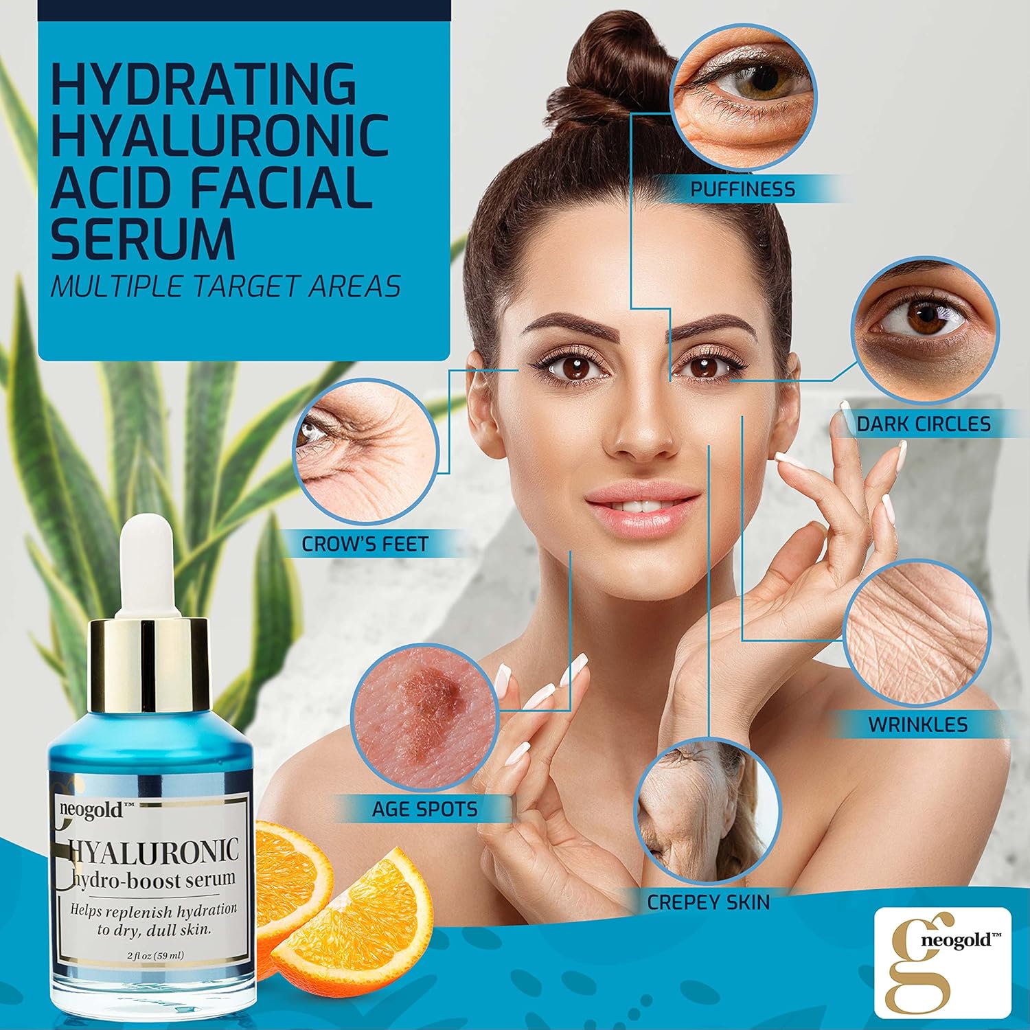 - HYDRATE & RESTORE – Dermatologist-Tested, Clinically-Tested, & Allergy-Tested Formula. Manufactured in our FDA-Regulated & Inspected Laboratory in Chicago, USA. If for any reason you decide this Neogold Hyaluronic Acid Serum isn't a fit for your skin, we're here for you. Each purposefully balanced medley of key antioxidants, super-nutrients, & nourishing botanical actives enhance efficacy & delivers long lasting skin-friendly benefits, without harmful additives or fragrances.