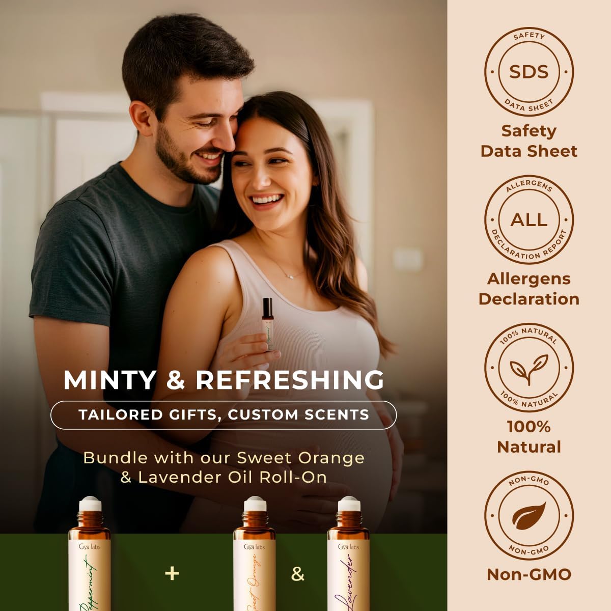 - Gentle Comfort for Queasiness: Made with 100% pure natural peppermint oil, this essential oil roll-onâs sharp, minty scent may ease queasiness, motion discomfort, and morning unease, offering a refreshing, soothing lift for pregnant women.