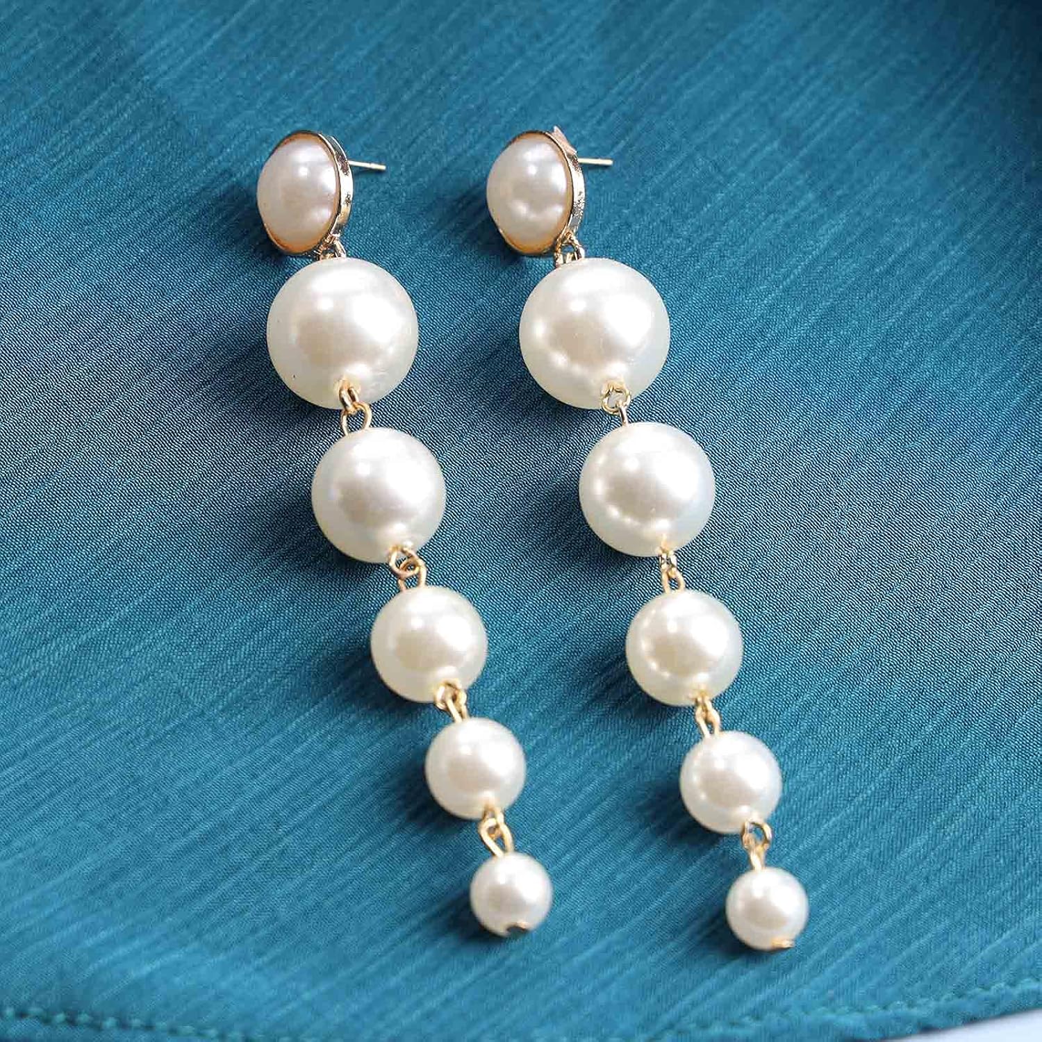 - Long Pearl Drop Earrings made of high quality alloy and bead,comfortable to wear.