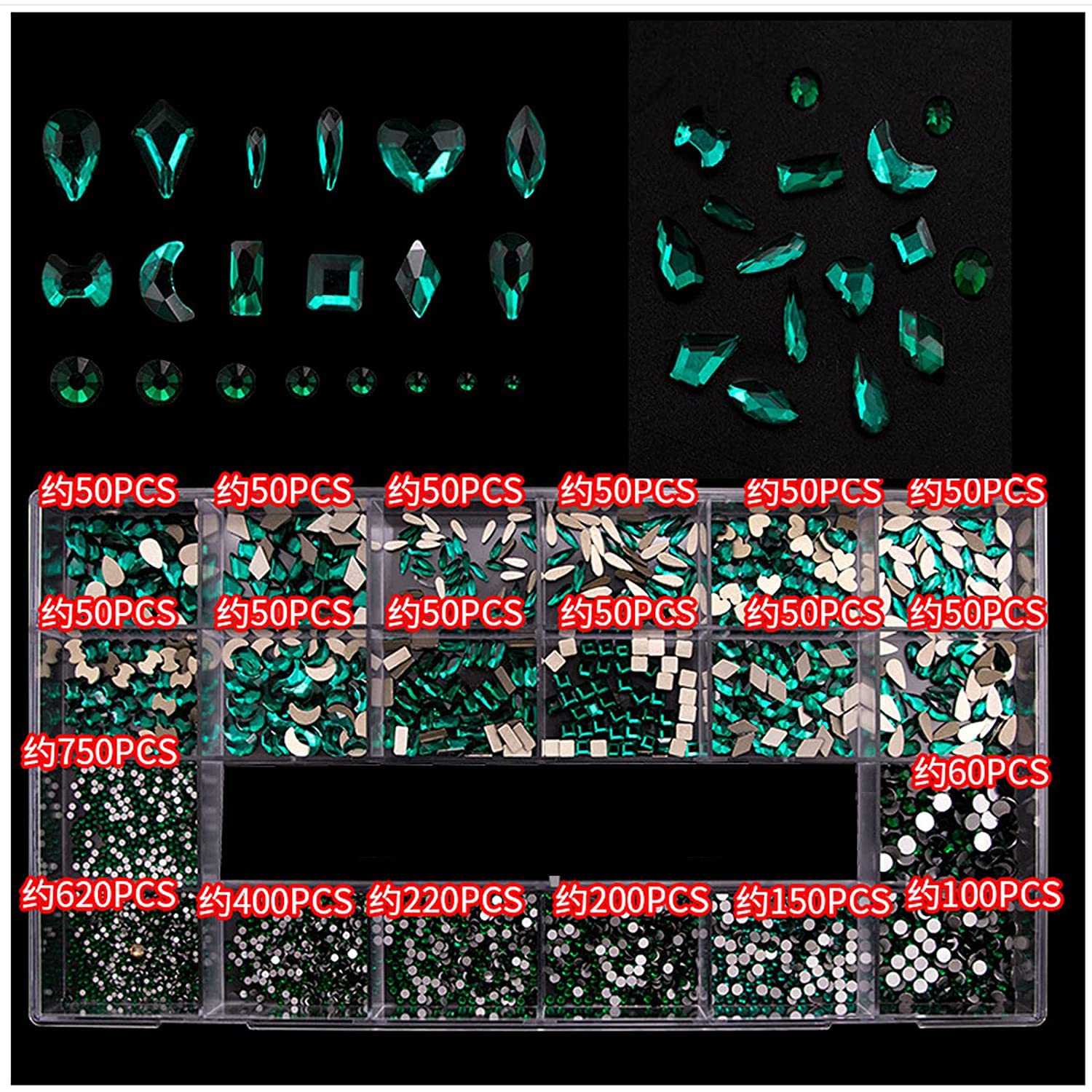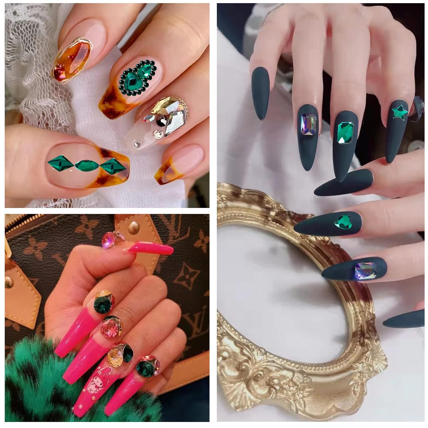- 💎【Green Rhinestones for Nails】:The nail crystal kit includes 2500 round flat rhinestones of 8 kinds and 600 green special-shaped diamonds of 12 kinds in a transparent storage box, 1pcs nail rhinestones pen and 1pcs tweezers. Our 3D nail art rhinestones are available in different popular styles, which will add brilliance and charm to your craftsmanship and make your nails more dazzling and charming.
