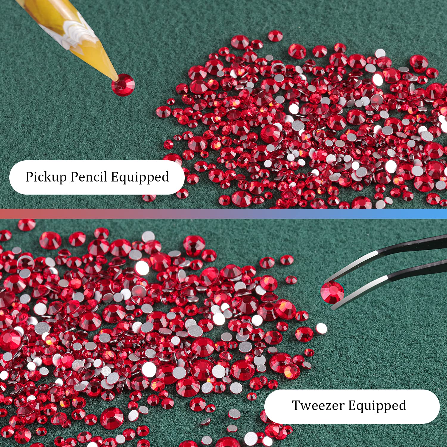 - ❤WHAT YOU WILL RECEIVE -- 2 Boxes of 6 Sizes Red Round Glass Nail Crystal Rhinestones Beads (Totally About 1720 PCS); 1 PCS Rhinestone Picker Pencil; 1 PCS Tweezer. The Well Equipped Rhinestone Set Is Suitable for Both Professional Nail Technician and Inexperienced Starter for Nail Art.