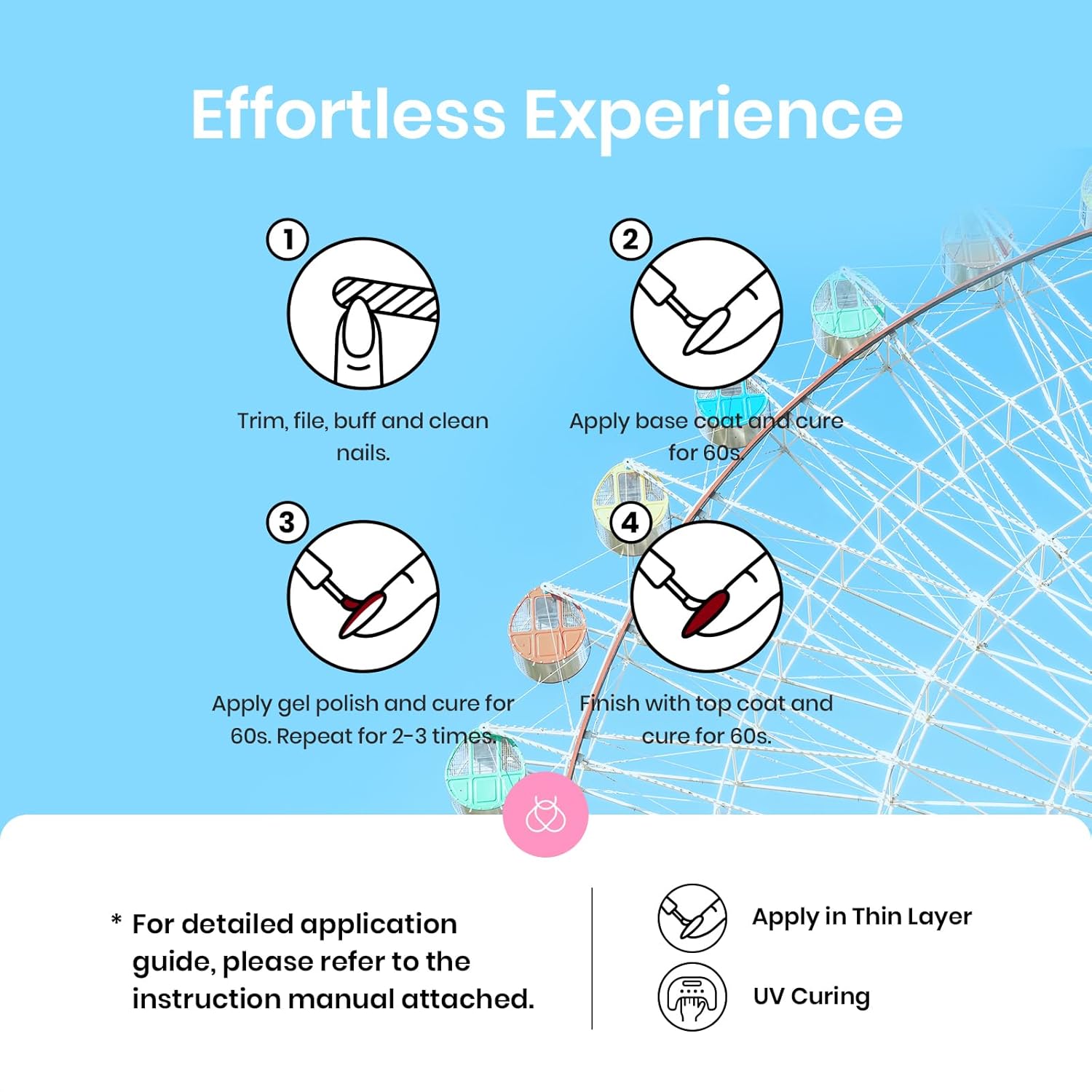 - ăWhat You Getă: 20 x Mini spring summer Gel Nail Polish Kit Spring Summer Colors (0.17oz/5ml each bottle) + 3 x No Wipe Base and Glossy and Matte Top Coat (0.25oz/7.5ml each bottle). 20 beautiful shades of trendy colors suitable for all seasons and daily routine life!