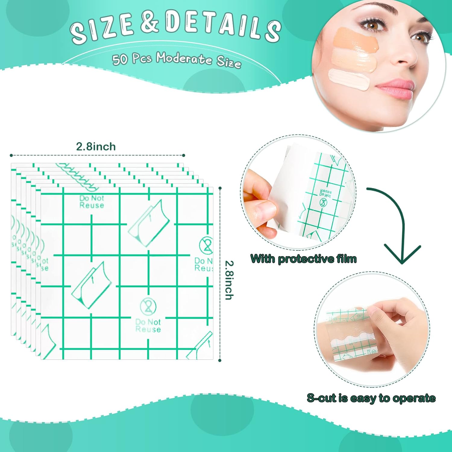 - Sufficient in quantity: you will receive 50 pieces of transparent waterproof bandages, each piece has suitable size, which is proper for you to stick on your hands and get a better makeup experience, also you can cut to a proper size to fit your actual needs better