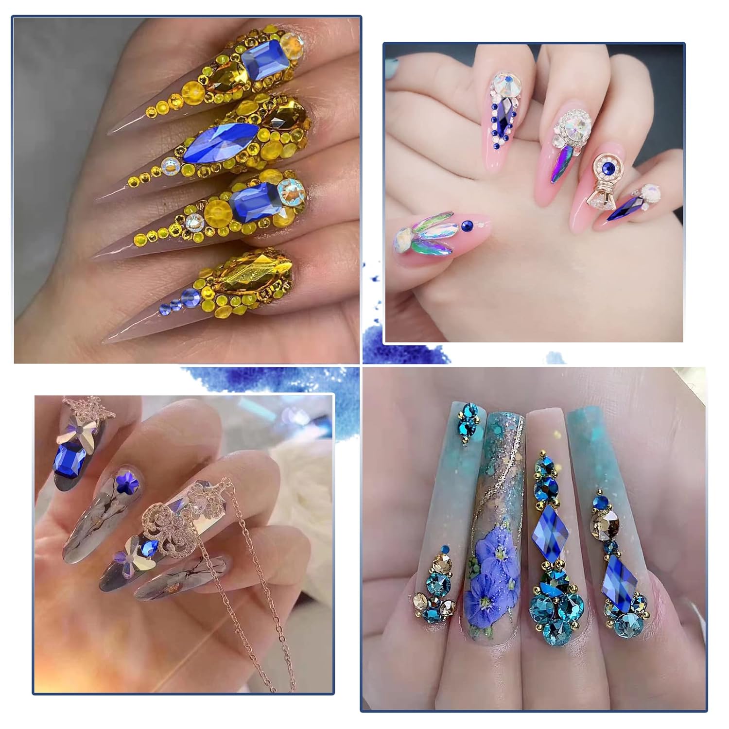 - 💎【Blue Rhinestones for Nails】:The nail crystal kit includes 2500 round flat rhinestones of 8 kinds and 600 blue special-shaped diamonds of 12 kinds in a transparent storage box, 1pcs nail rhinestones pen and 1pcs tweezers. Our 3D nail art rhinestones are available in different popular styles, which will add brilliance and charm to your craftsmanship and make your nails more dazzling and charming.