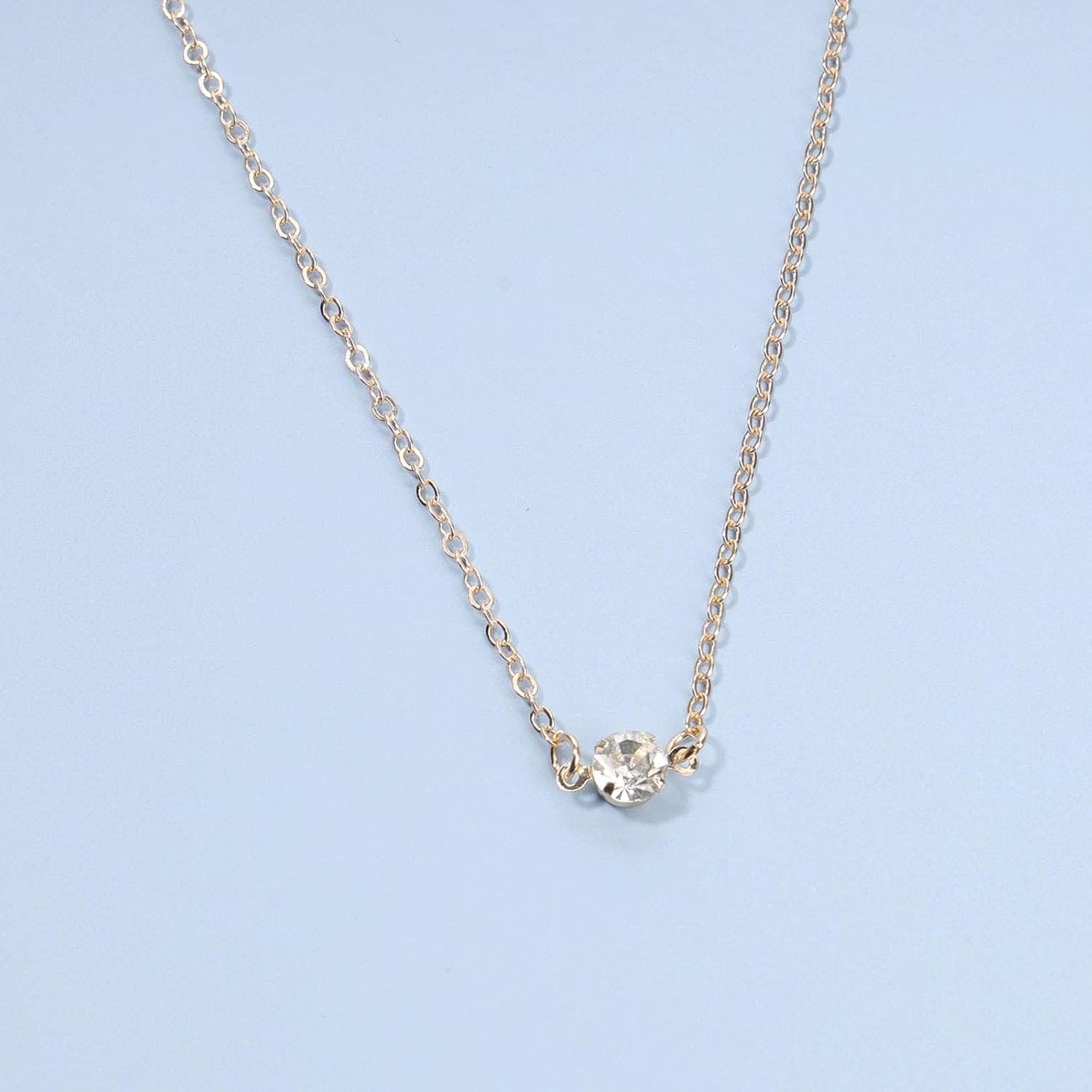 Boho Tiny Crystal Choker Gold Clear Quartz Pendant Necklace Minimal Dot CZ Choker Necklace Simple Everyday Necklace Wedding Necklace Jewelry for Women and Girls Gifts