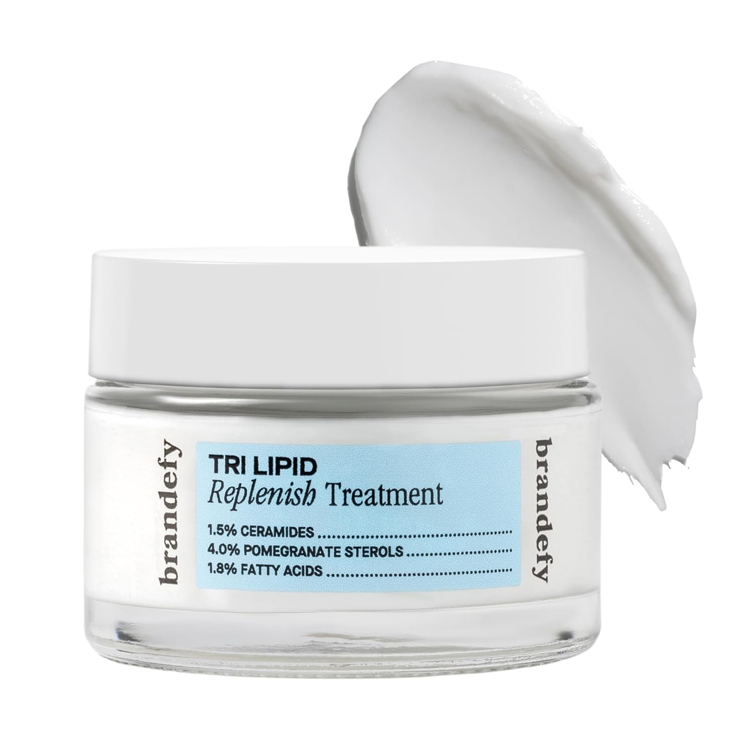 Brandefy Tri Lipid Replenish Treatment - 1.5% Ceramides, 4.0% Sterols, 1.8% Fatty Acids - Peptide Moisturizer, Hydrating Face Cream, Made in the USA (1.6 Oz)