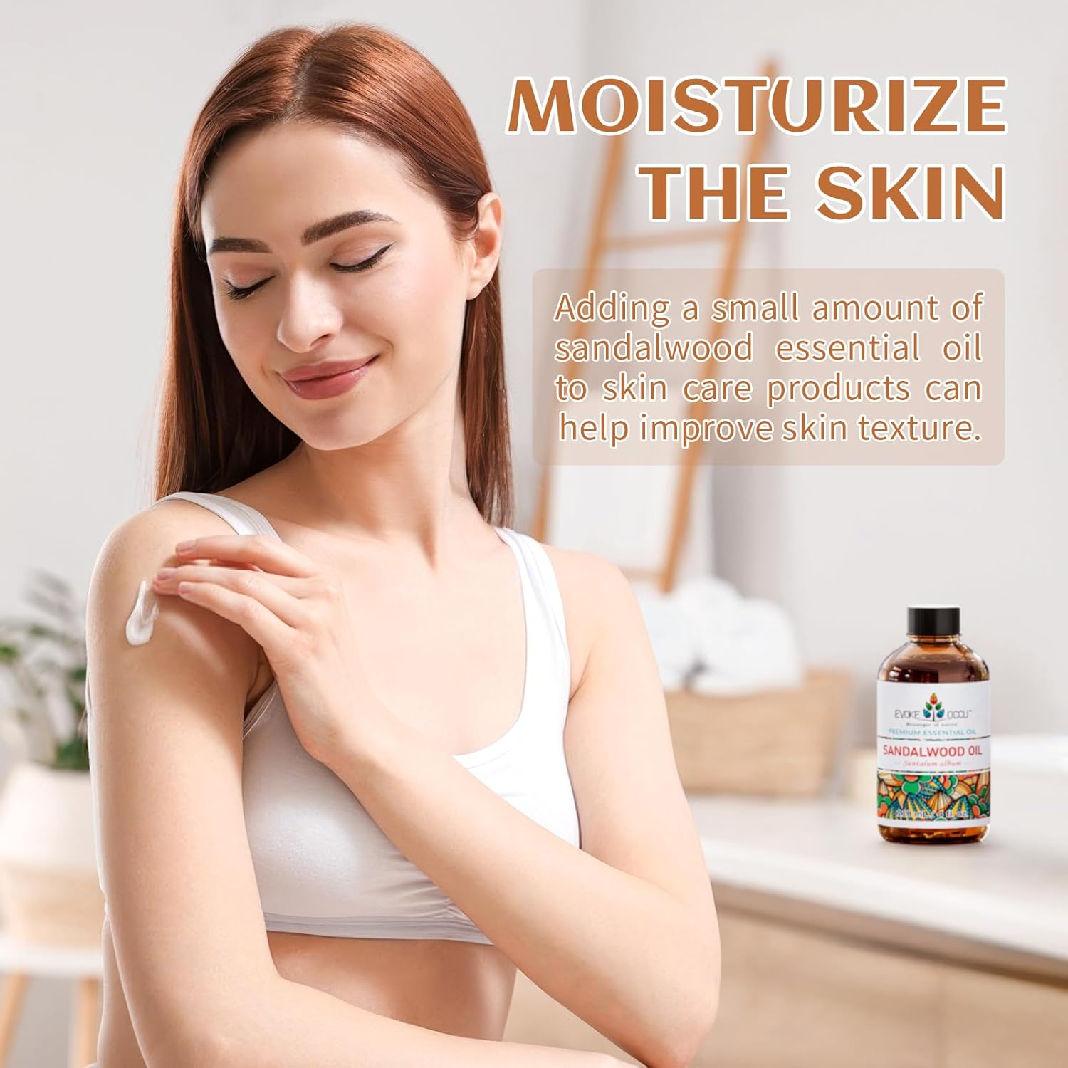 EVOKE OCCU Sandalwood Essential Oils for Skin Care, Diffuser, Perfume, Candle and Soap Making - 4 FL Oz