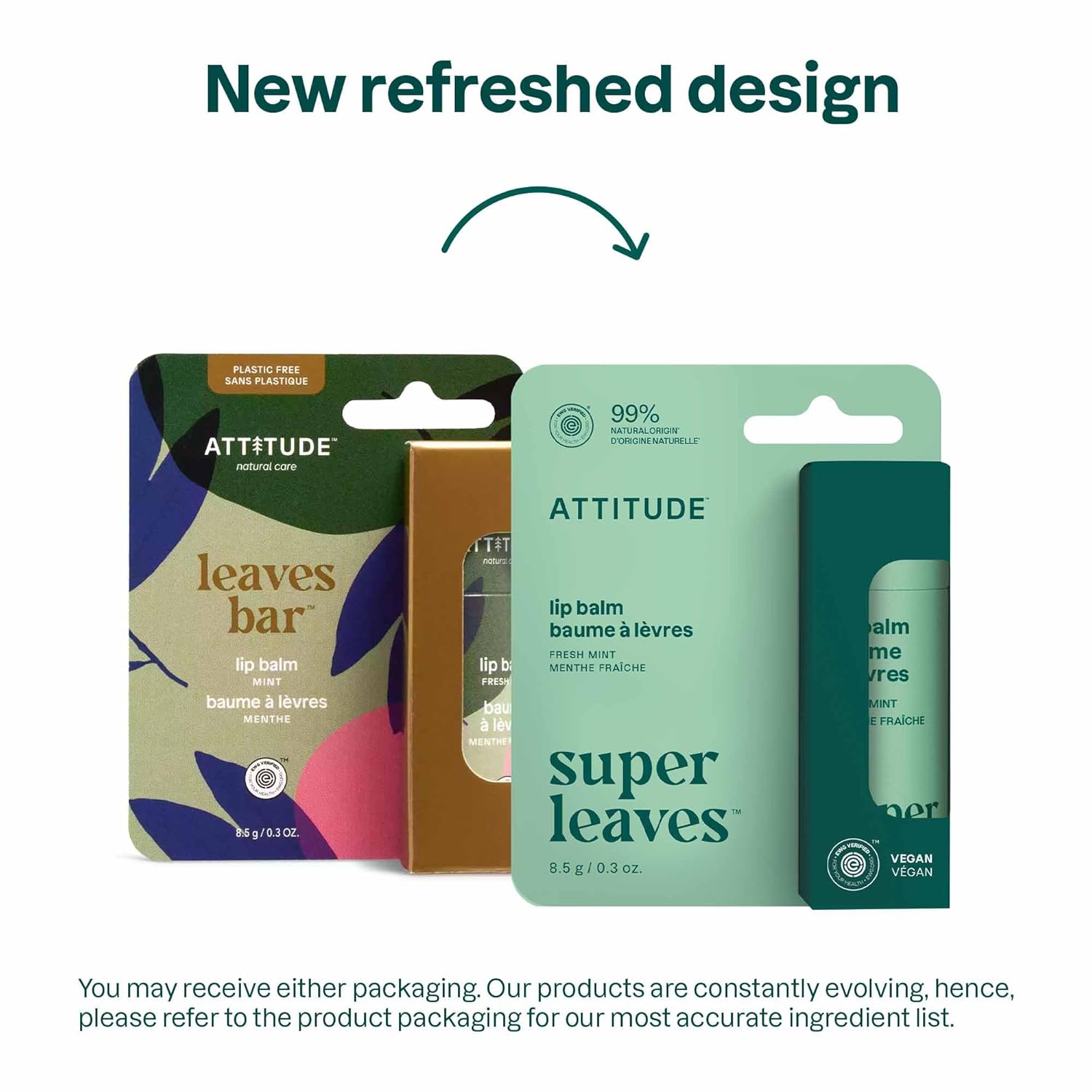 ATTITUDE Lip Balm, Natural Origin, Nourishes & Protects, Shea Butter, Coconut & Olive Oils, EWG Verified, For Dry Lips, Men and Women, Vegan, Fresh Mint, 0.3 Oz