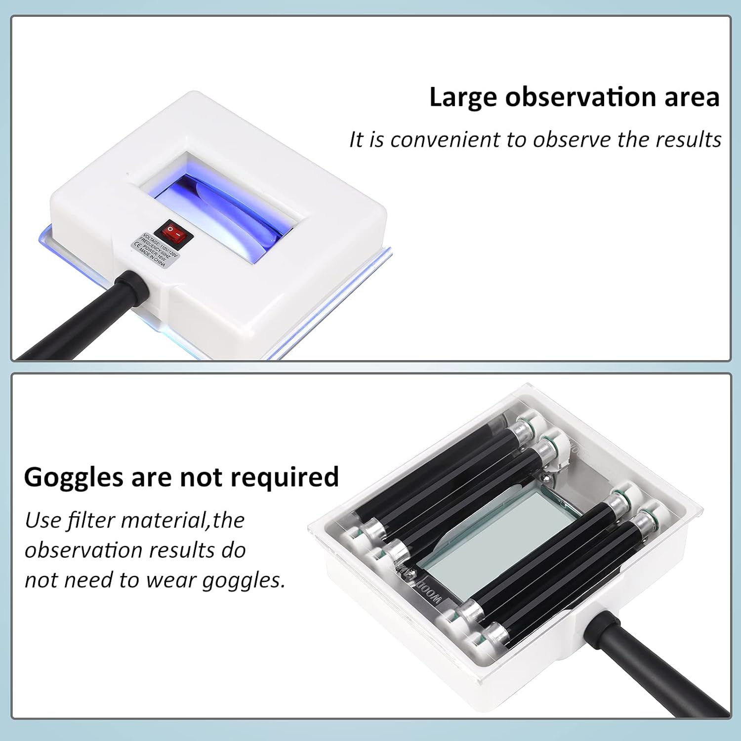 - 【Easy to Use】Both beauticians and individuals can use Wood's lamps to accurately detect skin conditions and formulate better skincare plans. On-site inspections are more authentic and reliable. The skin tester is very safe and has no side effects on the skin or eyes of users