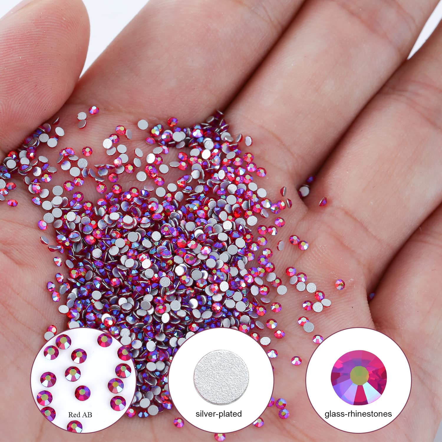 1440Pcs Red Ab Crystal Rhinestones,Glass Flatback Rhinestones Small Gemstones for Nail Face Makeup Art Crafts Clothes Decoration -(SS6,2.0mm,Red Ab)