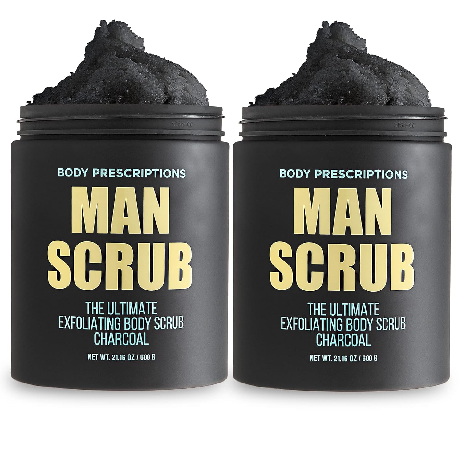 - RELAX + REFRESH: Delight your senses and relax at home with this 2 pack, 21.06 oz each ultimate exfoliating body scrub from body prescriptions. The “Man Scrub” comes in a largejar with an easy-to-use twist off top.
