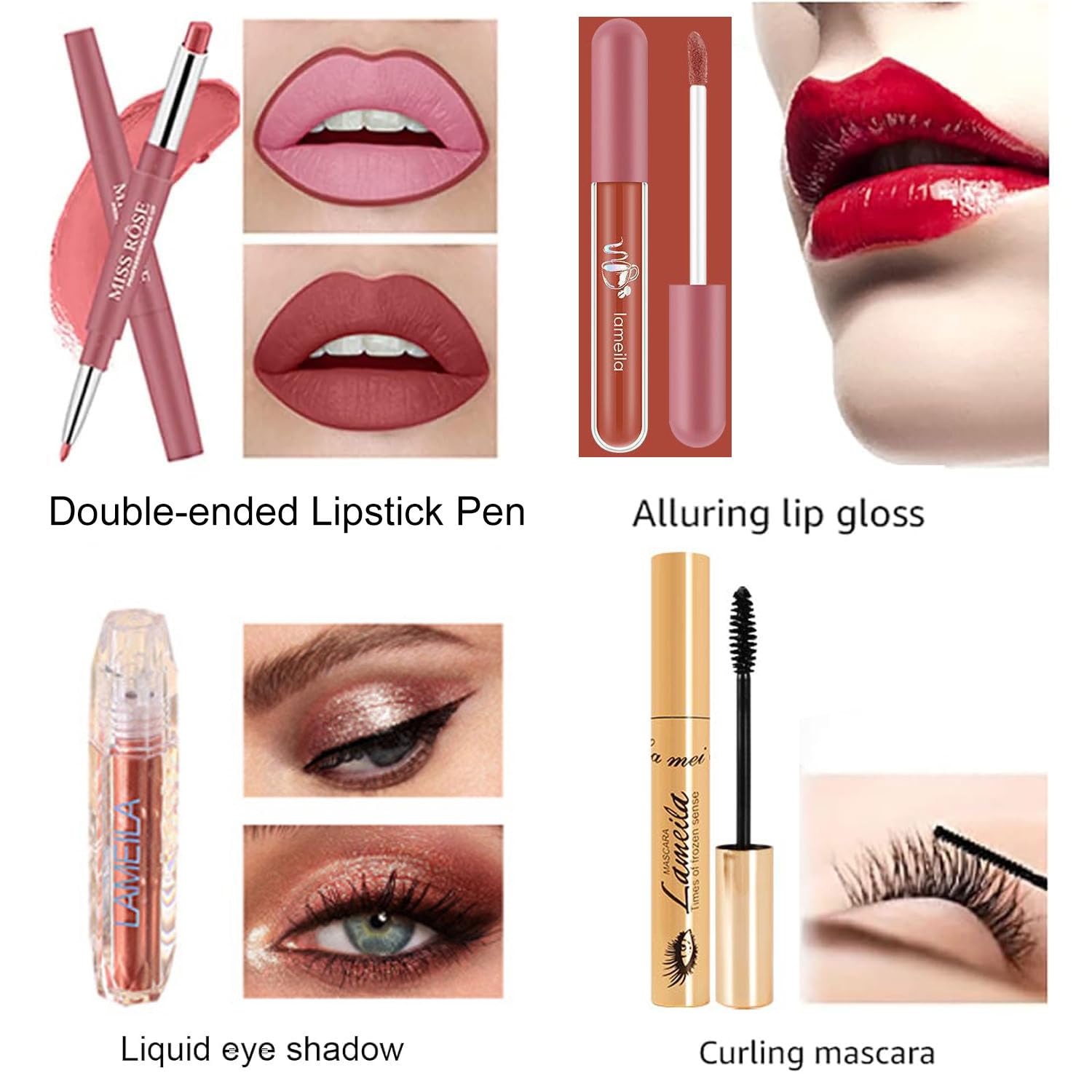 - đăAll In One Makeup SetăIncludes: 1 cosmetic bag, 2-Color Powder, 2-Colors Blush, 1 eyeliner, 1 eyebrow pencil, 1 powder puff, 1 Eyeshadow Stick, 1 Mascara, 1 lip gloss, 1 Double-ended Lipstick