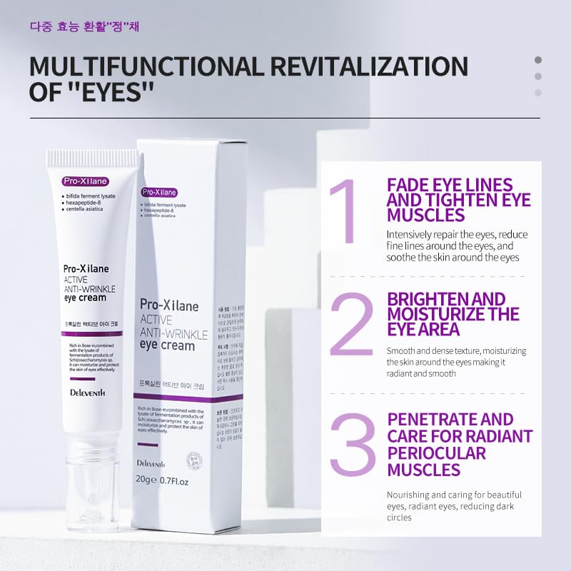 DEleventh Korean Brand Pro-Xilane Active Anti-Wrinkle Eye Cream 20g / Anti-Aging, Anti-Oxidation, Fade Fine Lines, Reduces Wrinkles, Dark Circles & Puffiness for Youthful, Bright Eyes