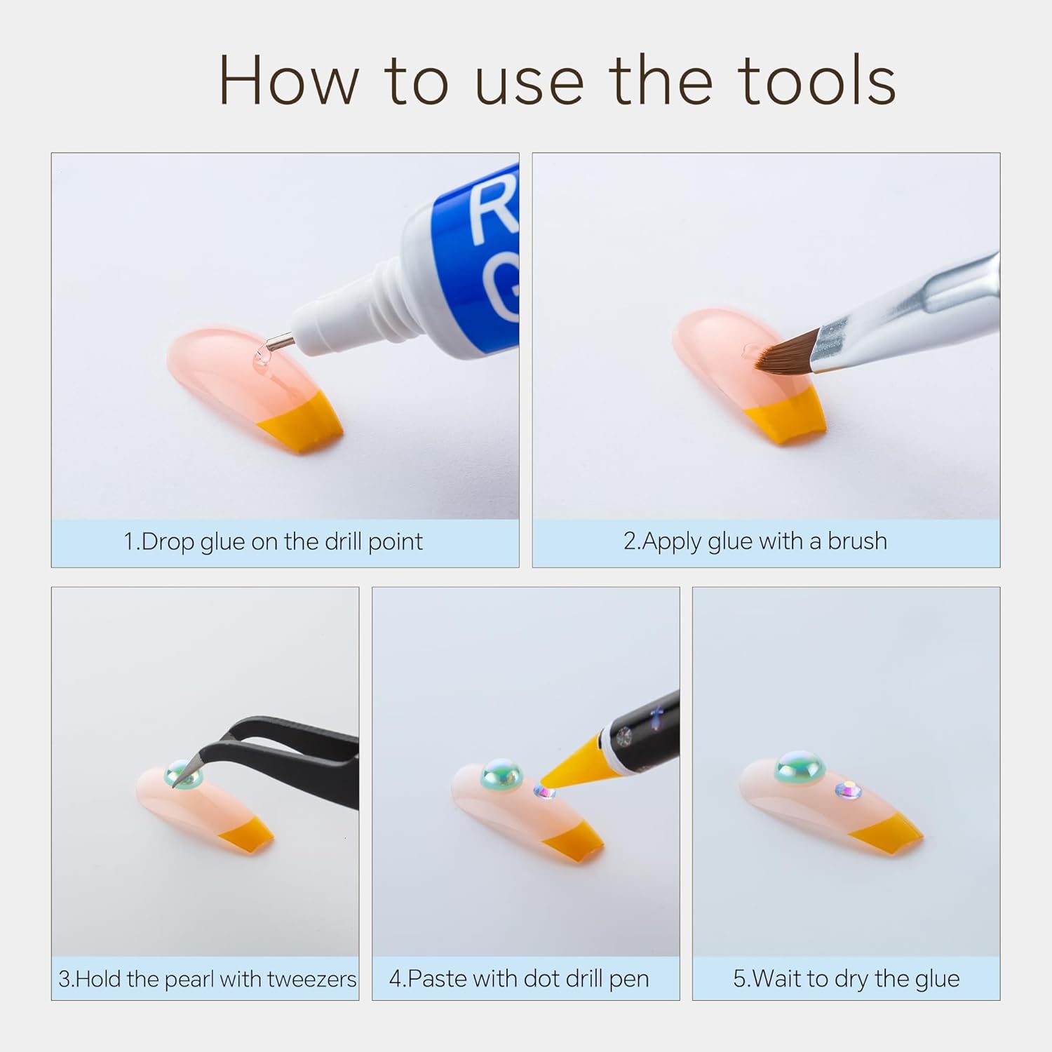 - Useful tools - These pearls and rhinestones have a flat back, which is excellent for easy placement.and you can pick up any large or small pearls and rhinestones with the crayons we bring along. And use the brush to smooth out the Gel, these tools will work very well