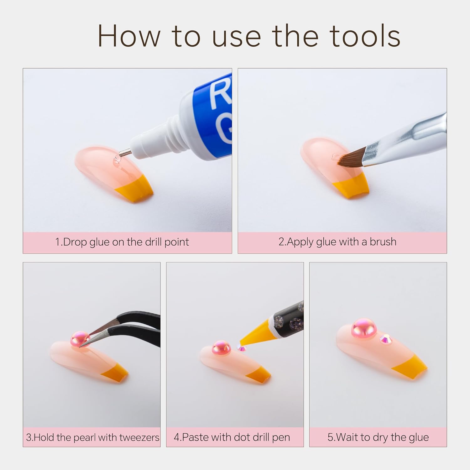 - Useful tools - These pearls and rhinestones have a flat back, which is excellent for easy placement.and you can pick up any large or small pearls and rhinestones with the crayons we bring along. And use the brush to smooth out the Gel, these tools will work very well