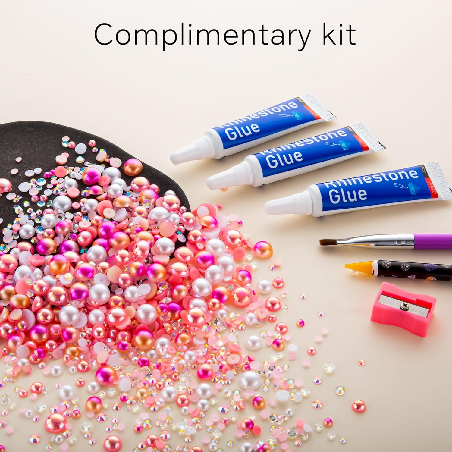 - What You Will Receive: 60g(30g*2)mixed size flat back pearls and rhinestones. 3*Rhinestone Glue. 1* wax pencil for rhinestones. 1*Pencil sharpener(color random). The mix half round pearls and rhinestones can make more beautiful handicrafts for your friends, parents, yourselfs on any festivals.If you need a mixed size pack of pearl rhinestones