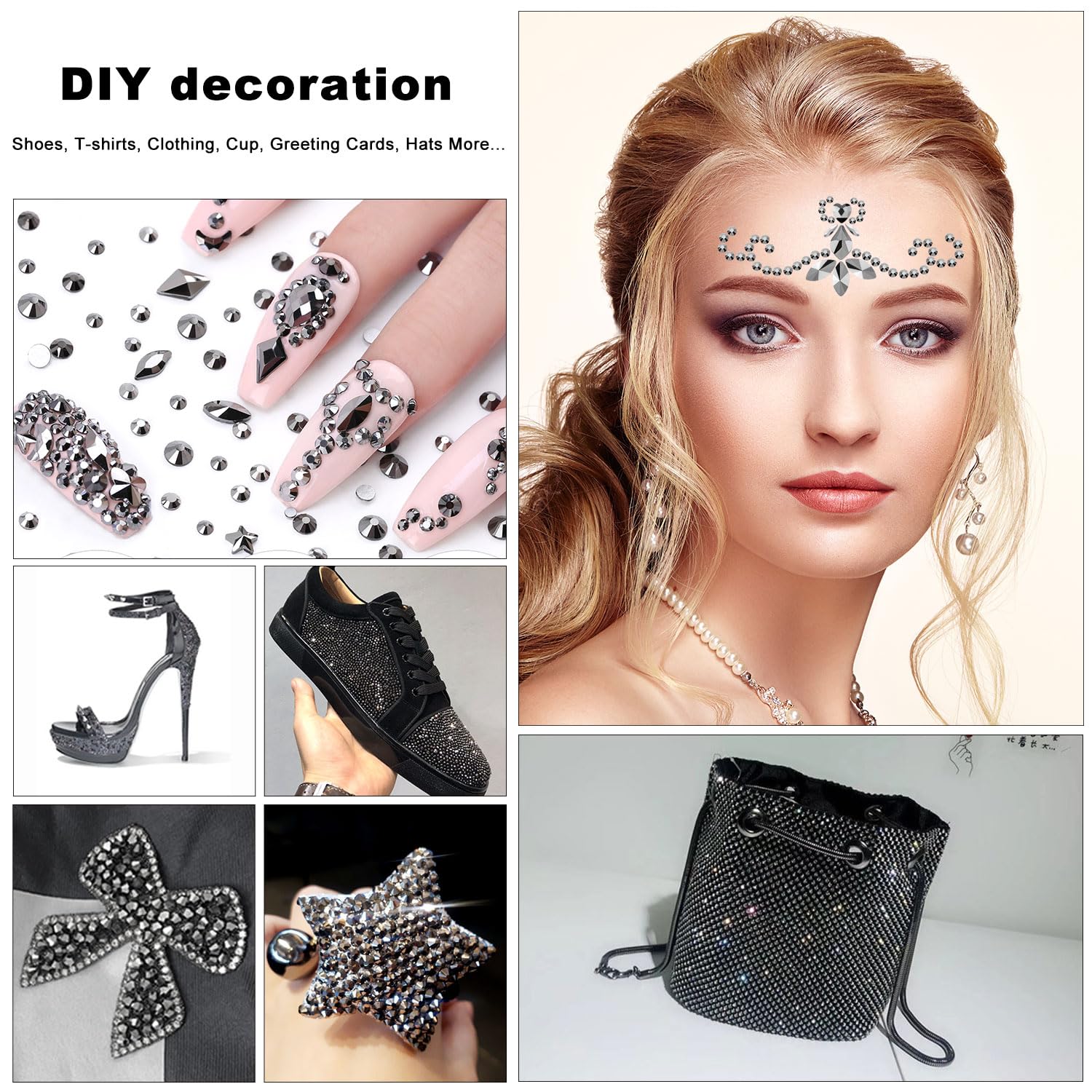 - 💎You can use rhinestones for, Nails, Art, Jewels, Skin, teeth, face, eye, Makeup, tumbler, glass, crafts, cardstock, phone, phone case, plastic, glasses etc. If you are using shoes, clothing, fabric textile type, I suggest you search on Amazon: B09ZQKTW4V