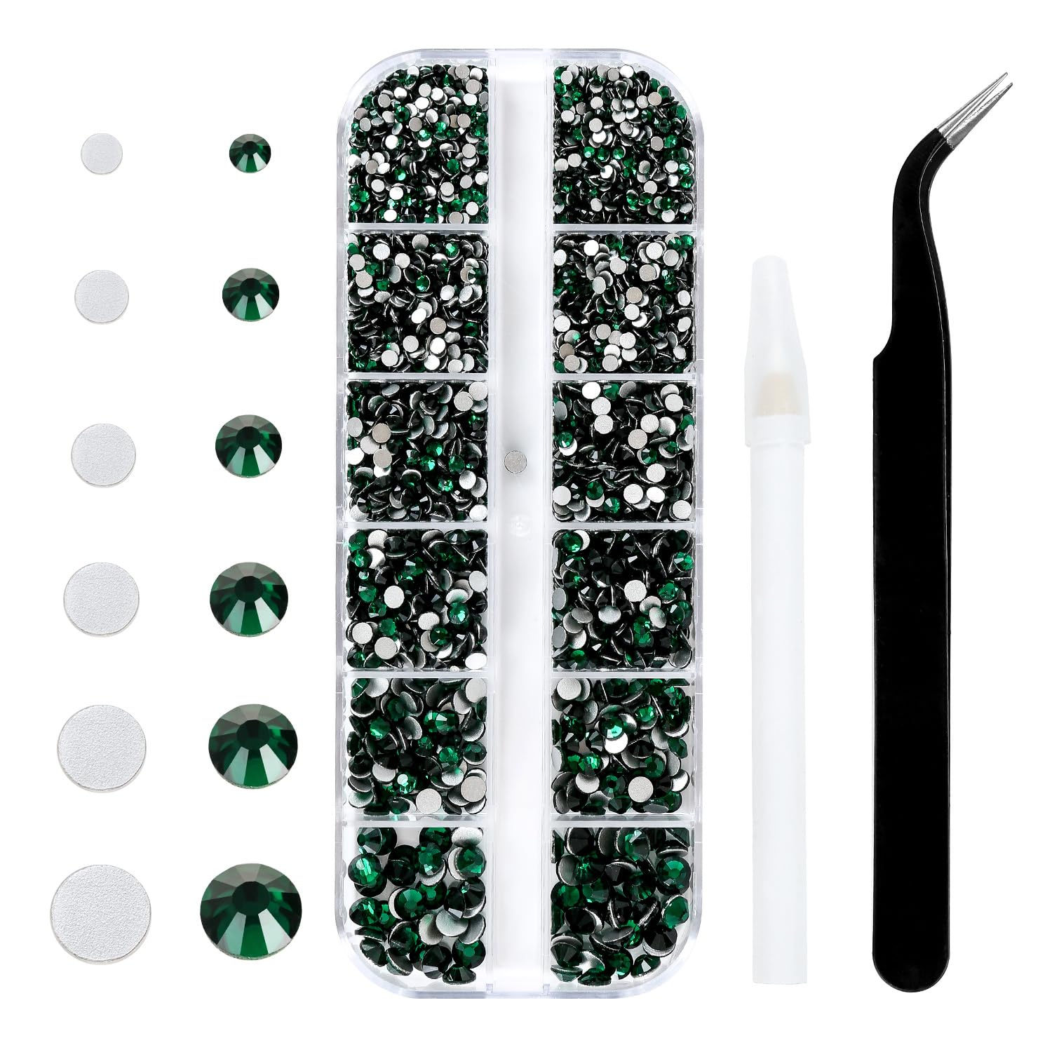 4240Pcs Malachite Green Flatback Rhinestones 6 Sizes Crystal Diamonds for Nail Art Crafts Clothes Shoes with Tweezers and Picking Pen