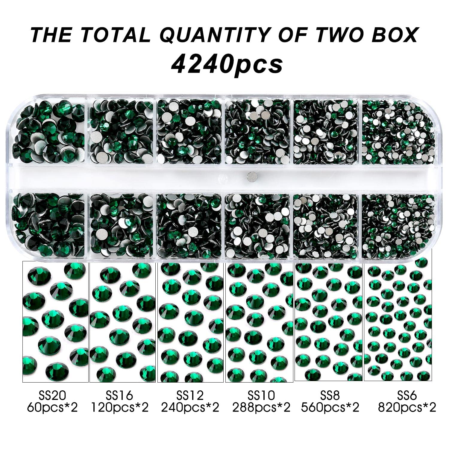 - 💎Product Packaging: Boxed SS6 2MM - 1680 Pcs, SS8 2.4MM - 1120 Pcs, SS10 2.8MM - 600 Pcs, SS12 3MM - 480 Pcs, SS16 4MM - 240 Pcs, SS20 4.8MM - 120 Pcs, 1 pcs Tweezers and 1 pcs picking pen.
