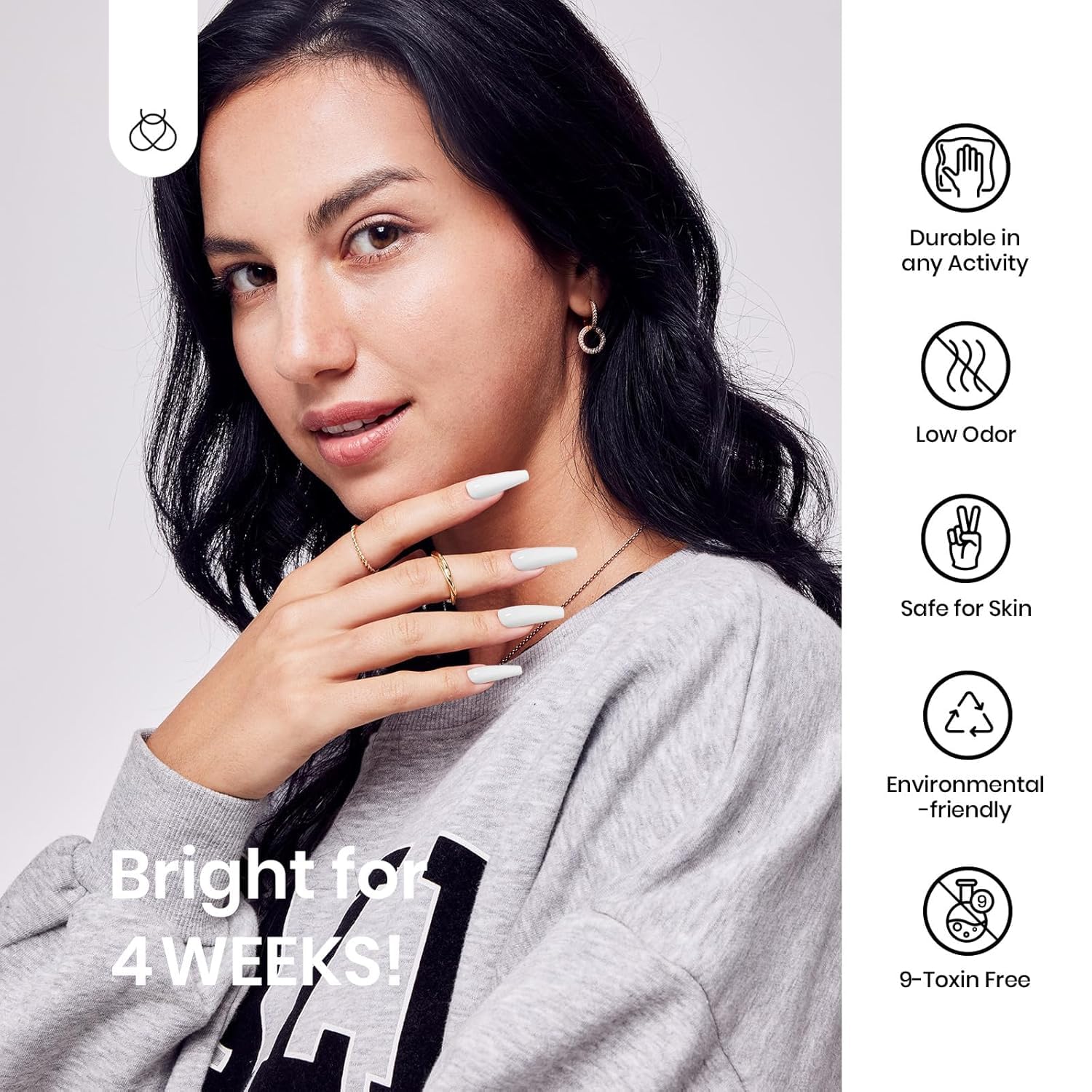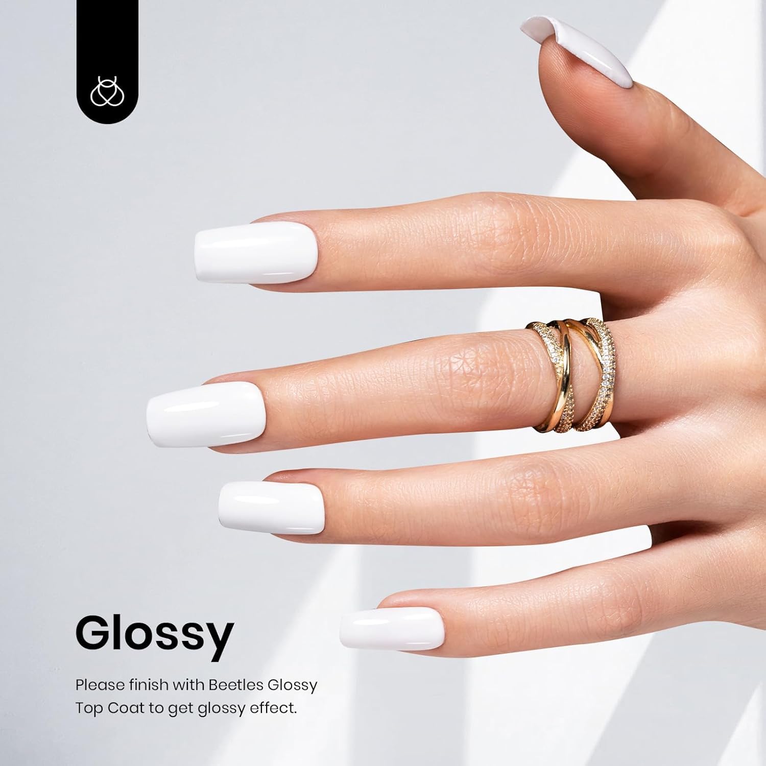 - Beetles White Gel Polish: 15ML *2 PCS bright white all-season gel polish set. Long-lasting for 28+ days with a perfect shine. The white gel polish set is an ESSENTIAL for everyone! Color Number: a219