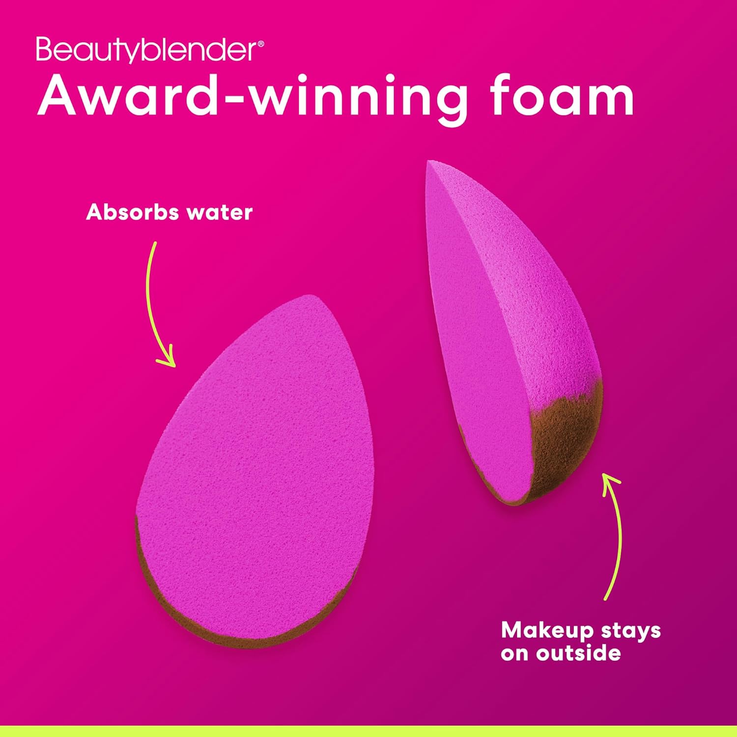 - SMOOTH BLEND: The award winning aqua-activated makeup blender sponge grows to about twice its size when wet and absorbs minimal product, so your formula lands on your complexion and not your sponge. Bounce and blend the beauty sponge to a smooth finish.