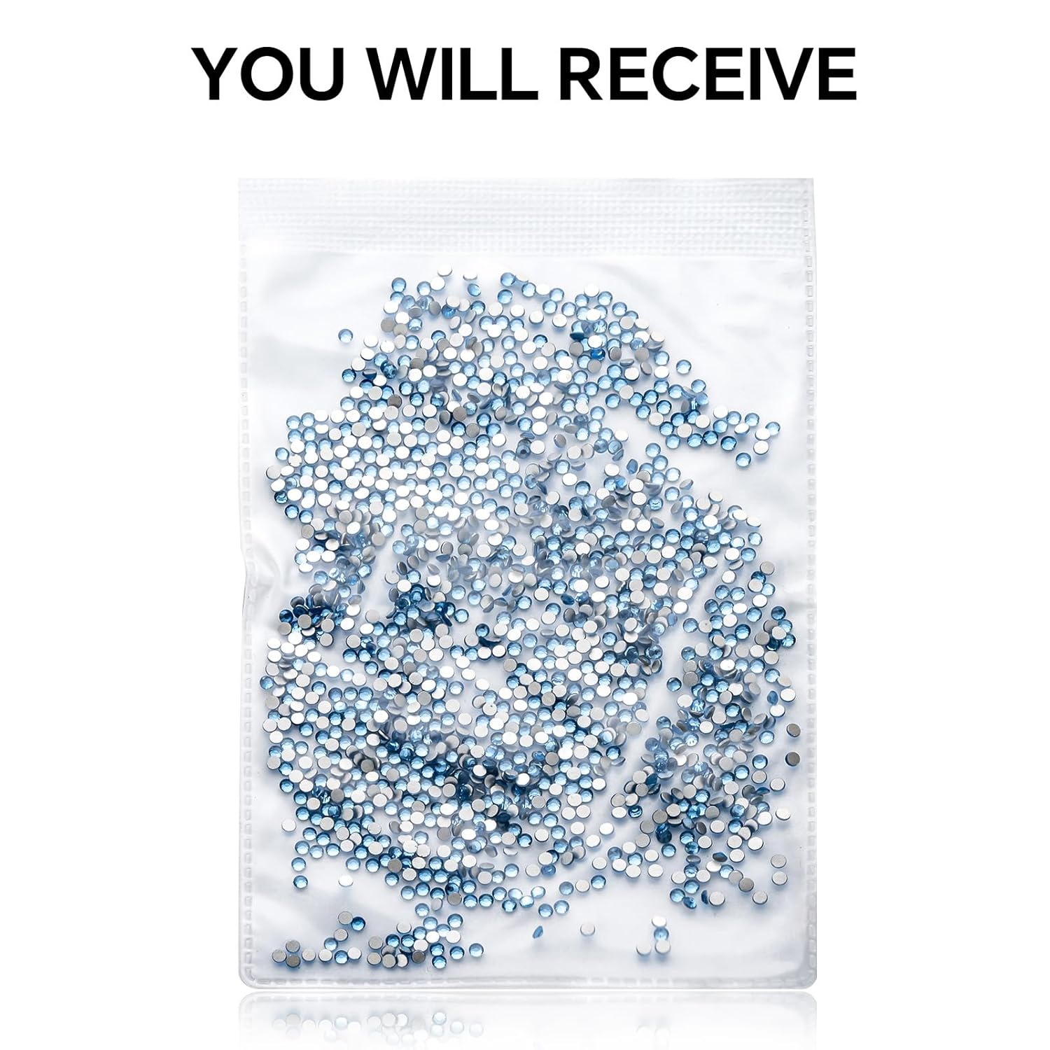 1440Pcs Light Blue Crystal Rhinestones,Glass Flatback Rhinestones Gemstones Small for Nail Face Makeup Art Crafts Clothes Decoration - (SS8,2.4mm,Light Blue)