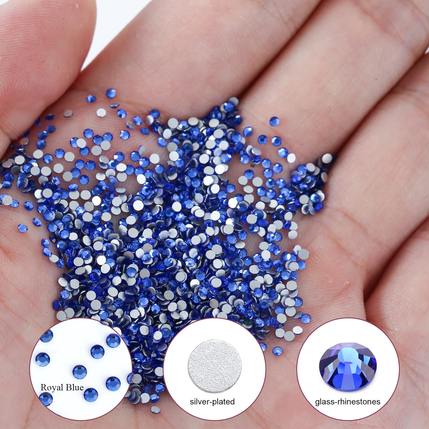 3000Pcs Royal Blue Crystal Rhinestones,Glass Flatback Rhinestones Mini Gemstones for Nail Face Makeup Art Crafts Clothes Decoration -(SS6,2.0mm,Royal Blue)