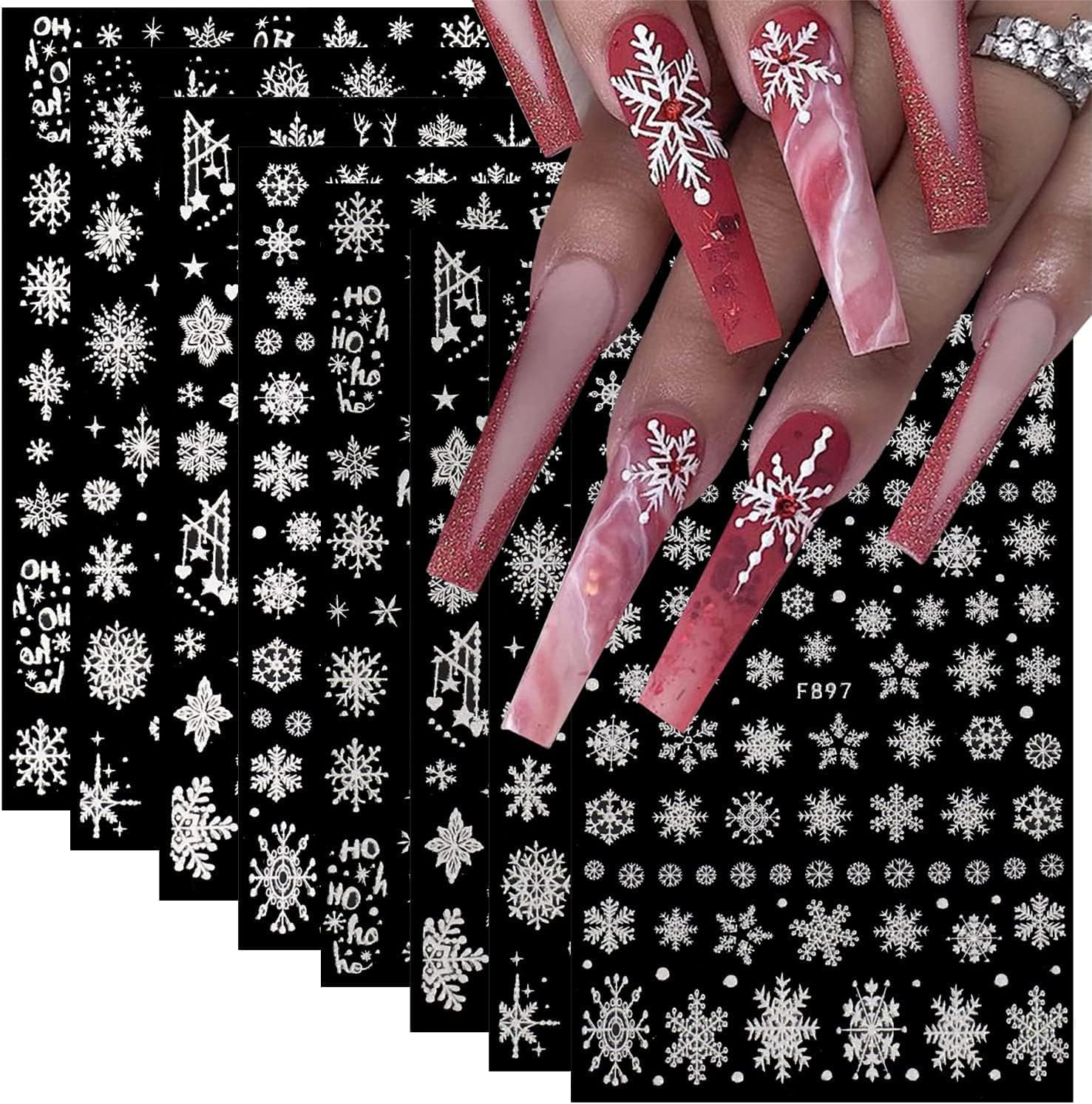 - ăPremium Materială- Glitter snowflake nail decals are made of environmental friendly, skin friendly, and non-toxic materials. The nails still remains glossy after remove the stickers. You can design your own unique Christmas nail decoration.