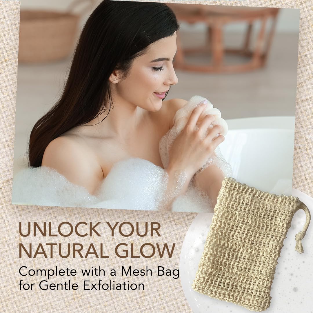 - 3-Pcs Goat Milk Soap with Soap Saver Bag - Upgrade your body care routine with O Naturals Goats milk soap. The gentle, chemical-free formula with natural ingredients is ideal for sensitive skin. It comes with a natural soap bag for gentle exfoliation & soap saving.