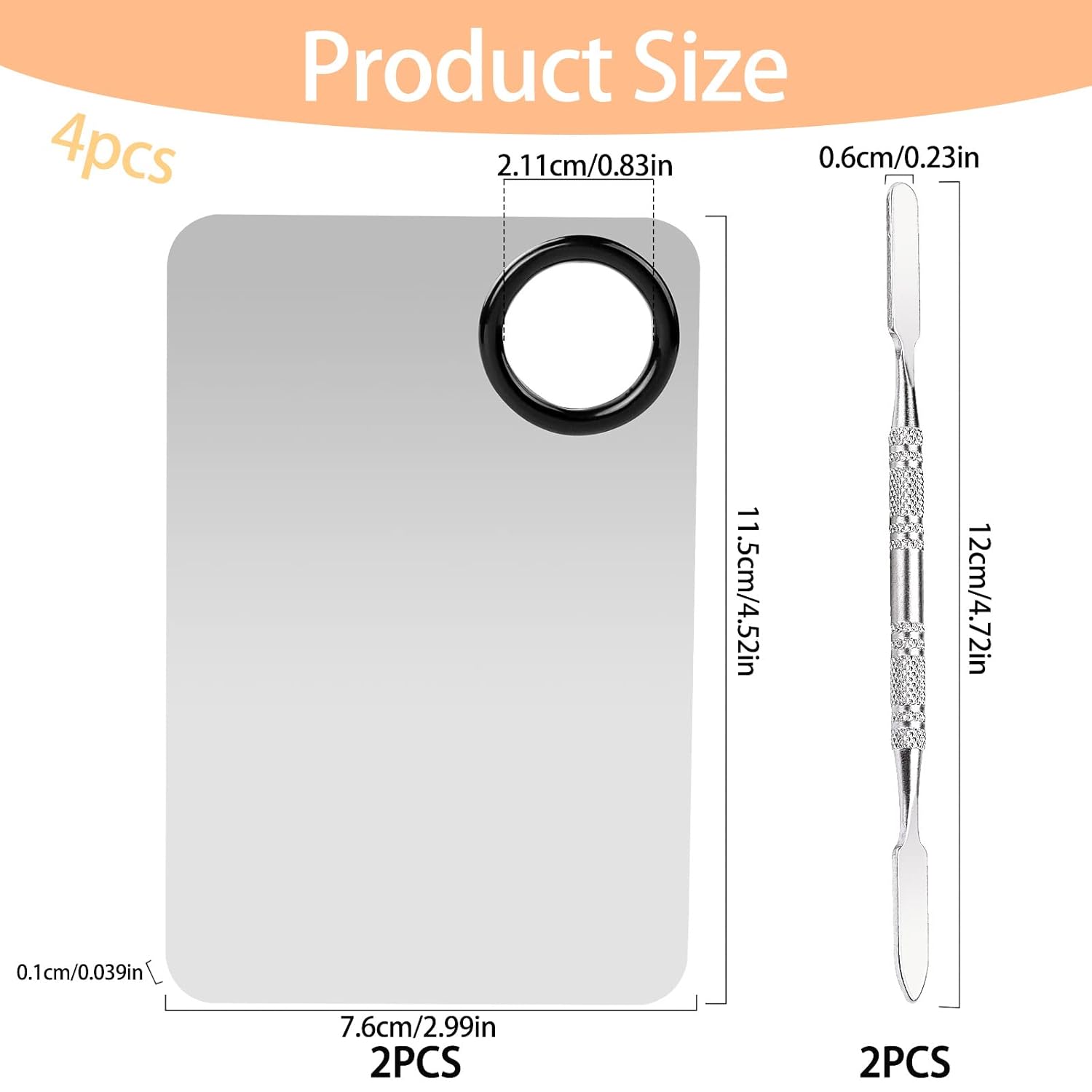 2 Sets Foundation Palette Makeup Mixing Palette Stainless Steel Cosmetic Mixing Palette with Spatula Makeup Artist Tool for Mixing Foundation Eye Shadow Eyelash Nail Art (4.52 x 2.99 inch)