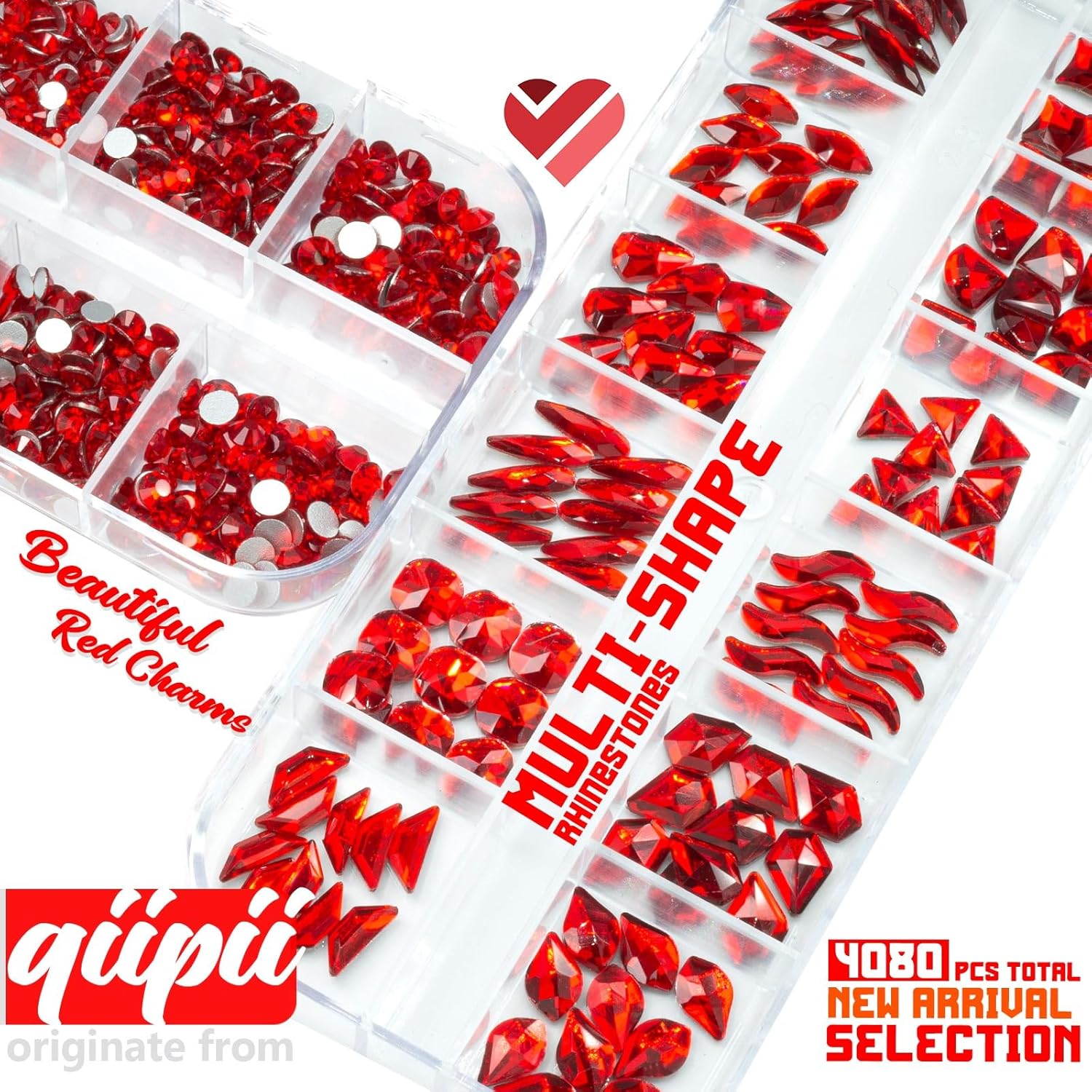 - ❤【4080Pcs More Quantity Crystal Red Nail Rhinestones + Stainless Steel Tweezer + Pickup Pen】Total 4080pcs sparkling Siam Red rhinestones nail crystals. Including 120pcs multi-shaped crystal rhinestones, 3960pcs multi-sized round crystal gem rhinestones. Enough amounts and more shape options for your daily work, go out or other decoration purposes. Comes with 1 Stainless Steel Tweezer and Pickup Pen for Manicure DIY Decoration at Home Salon Supplies.
