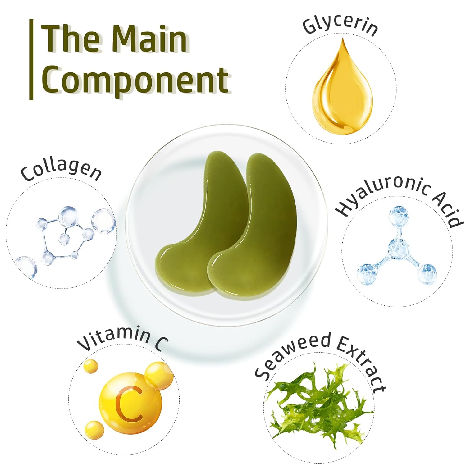 Adofect Eye Mask Collagen Eye Gel Pads Under Eye Mask for Puffiness and Dark Circle Under Eye Patches for Women and Men (Seaweed Green)