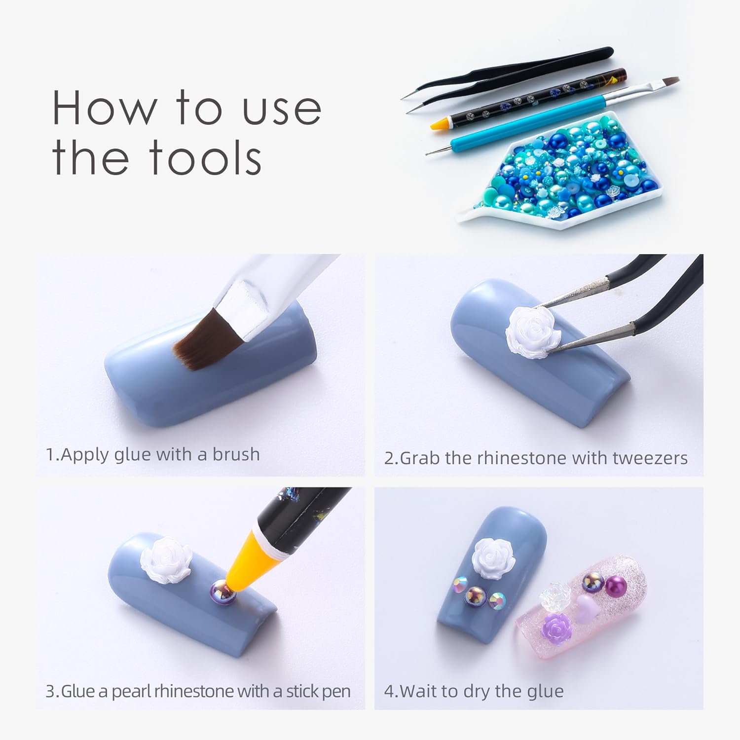 - Useful tools - These pearls and rhinestones have a flat back, which is excellent for easy placement.and you can pick up any large or small pearls and rhinestones with the crayons we bring along. And use the brush to smooth out the Gel, these tools will work very well