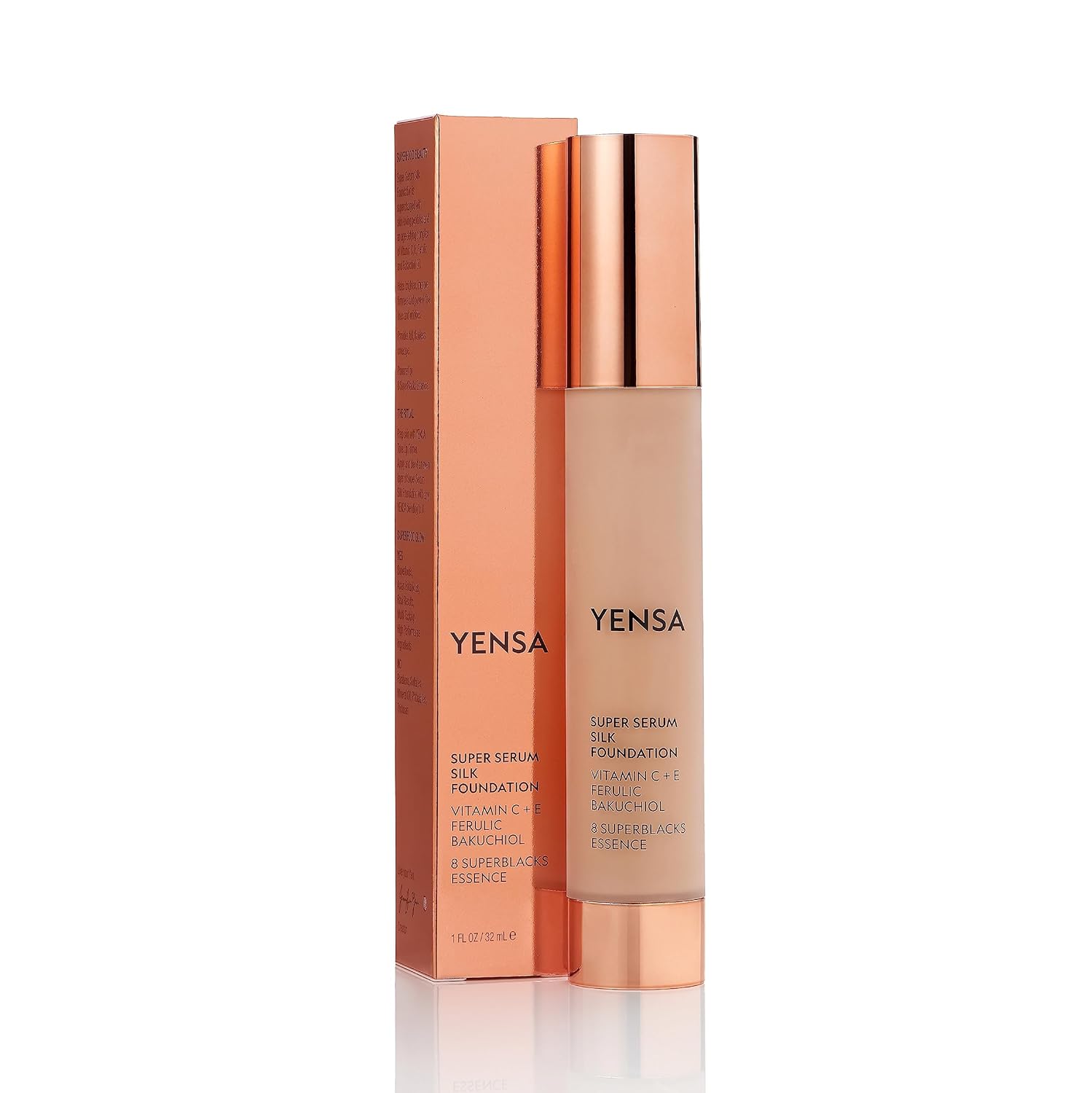 YENSA Super Silk Foundation - Full Coverage, Age-defying complex of Vitamin C, E, Ferulic, and Bakuchiol Oil (Deep 3) 1.0 fl oz