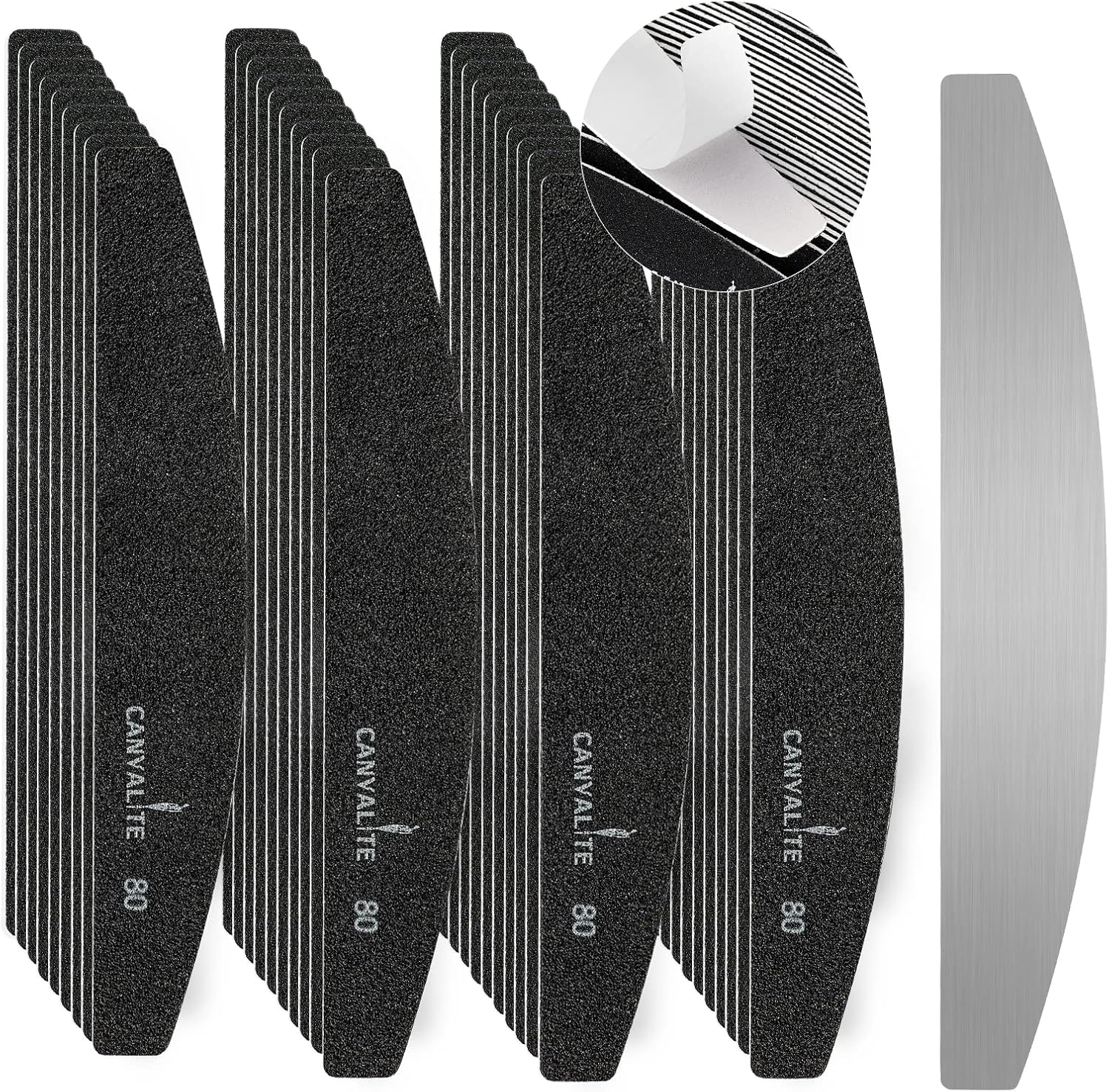 Canvalite 40 PCS Nail File Reusable Peel and Stick Nail Files Replaceable Emery Boards Nail File for Acrylic Nails Professional 80 Grit Fingernail Files for DIY Salon Use