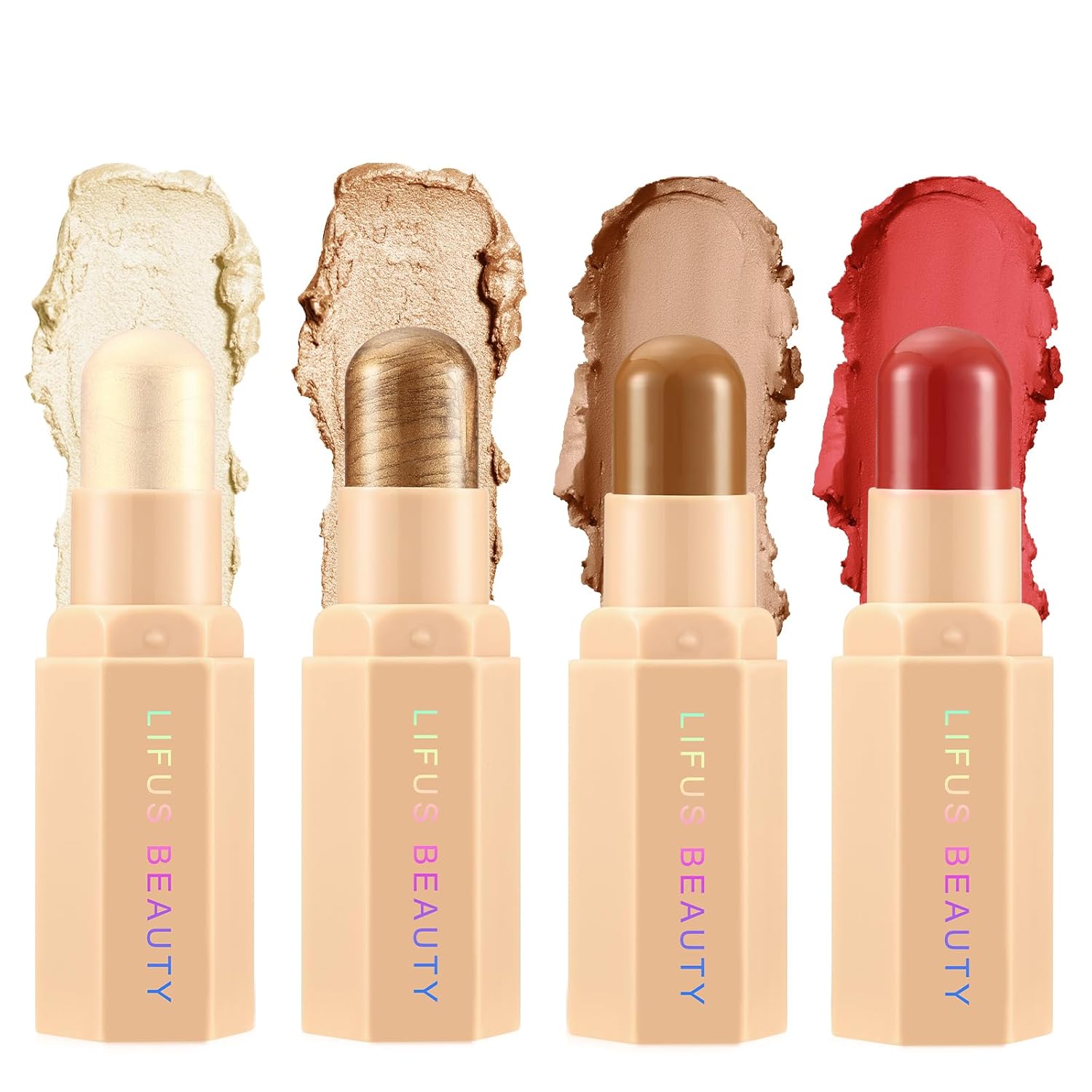 - [Highlighter Contour Makeup stick] - Countour highlight stick has a silky, lightweight, buttery smooth formula that blends seamlessly onto your skin! The makeup contour and makeup highlighter create the illusion of a sculpted, defined face in (almost) no time.