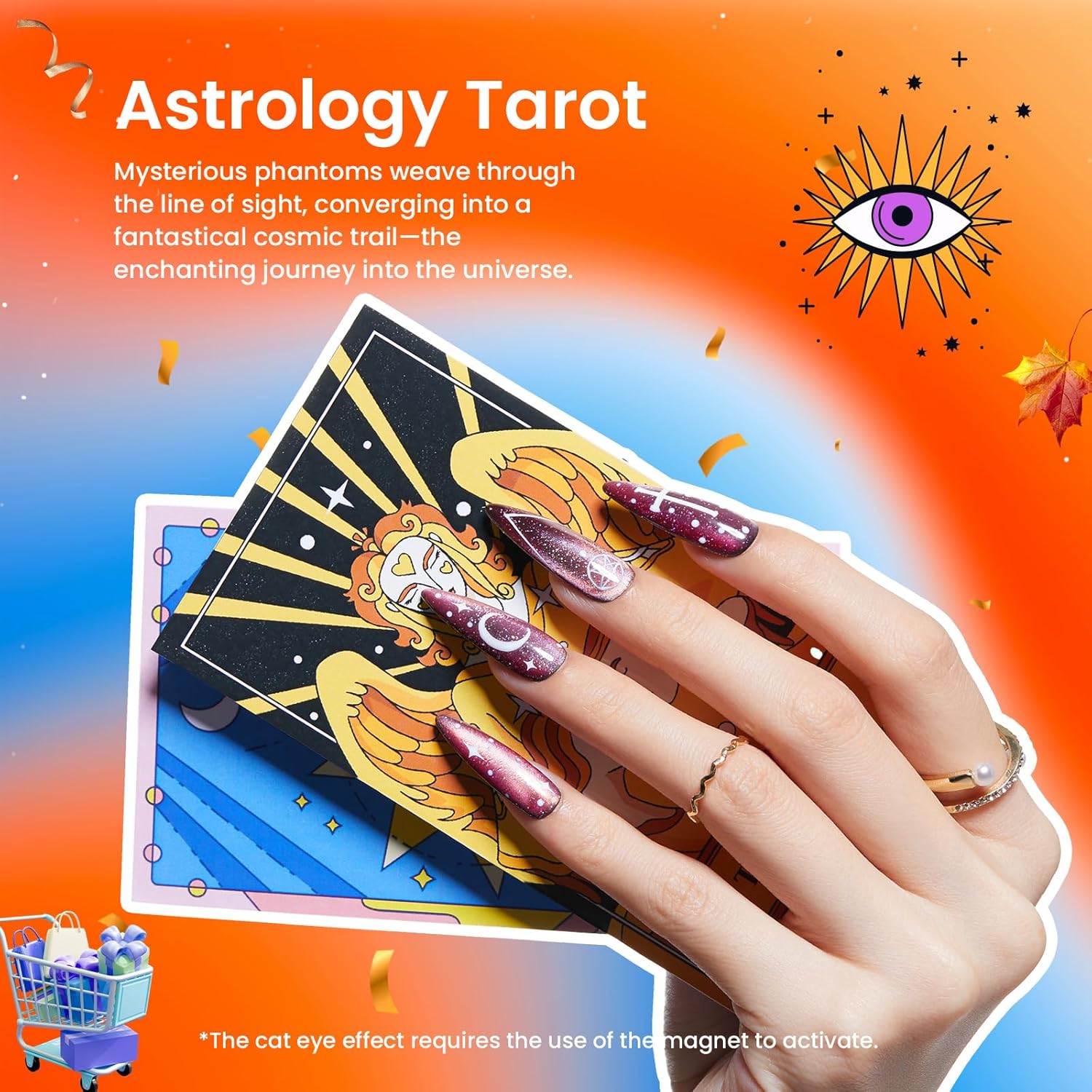 - 【Elegance Color Cat Eye Gel】Annual Special "Astrology Tarot Collection" gel nail polish set with a magnet: 2 Normal color gel, 2 Glitter gel, 2 Cat eye gel. 6 fantastic interstellar colors to create galactic designs on your nails. Only CL016 and CL020 are Cat Eye Gel. Color Number: d021-d020-d019-d018-d017-d016
